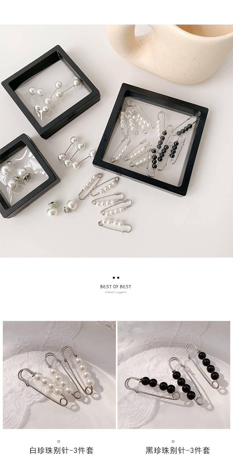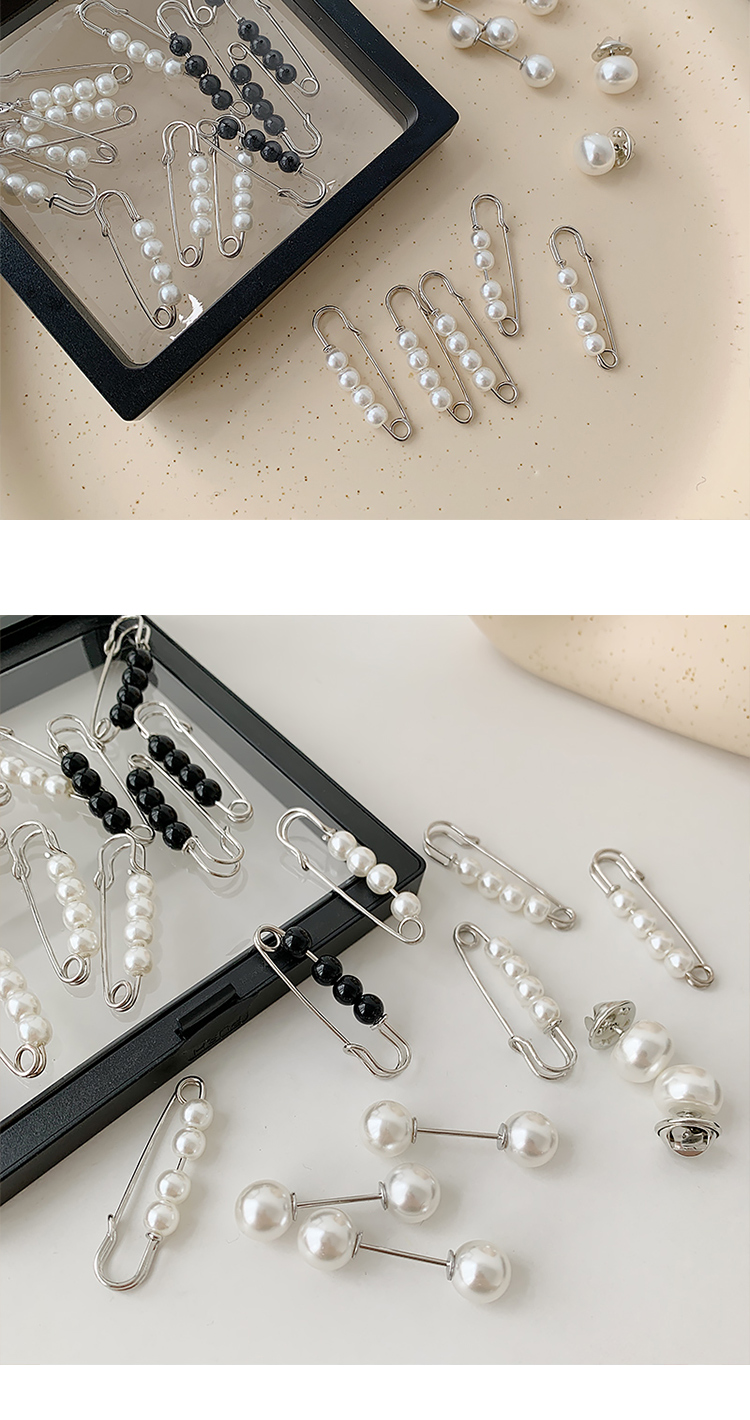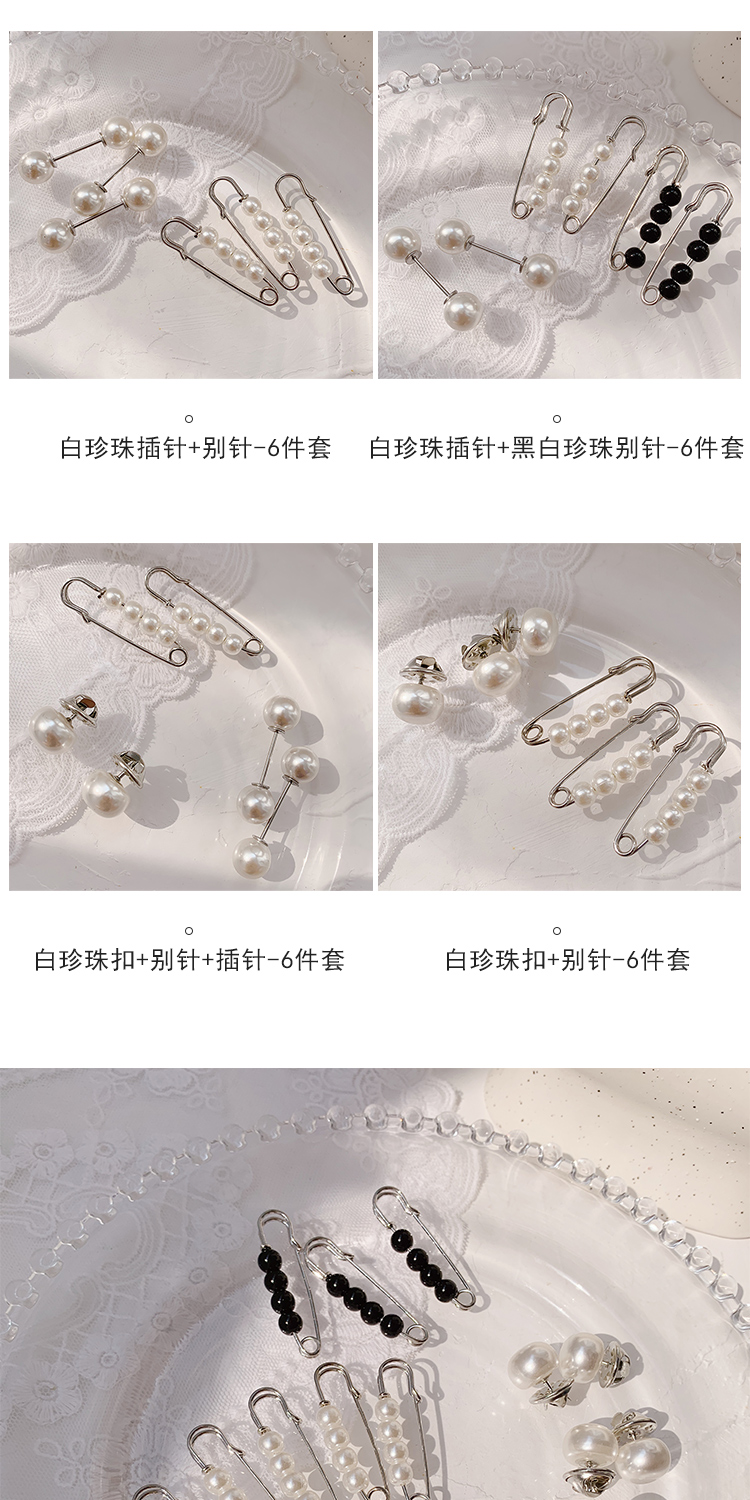 white pearl pin + black white pearl pearl pin-6-piece set