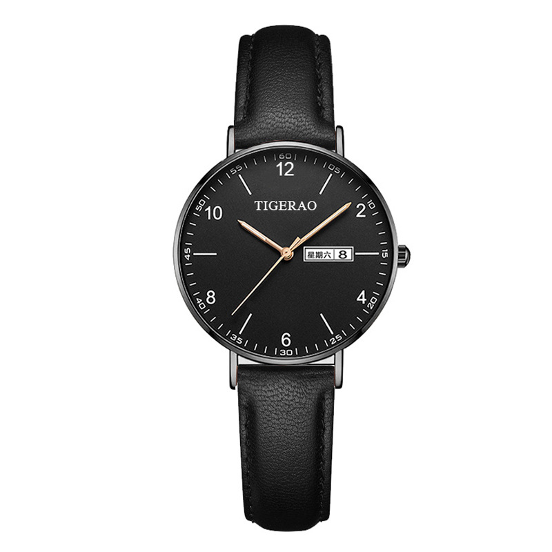 069 black leather rose shell white surface women's watch