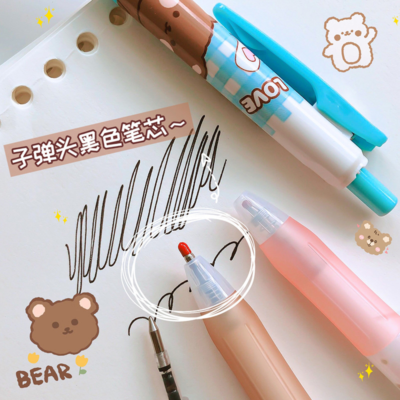 cartoon cute little chubby bear pockets pocket pen press short pen bullet black speed skating gel pen 0.5 中文版