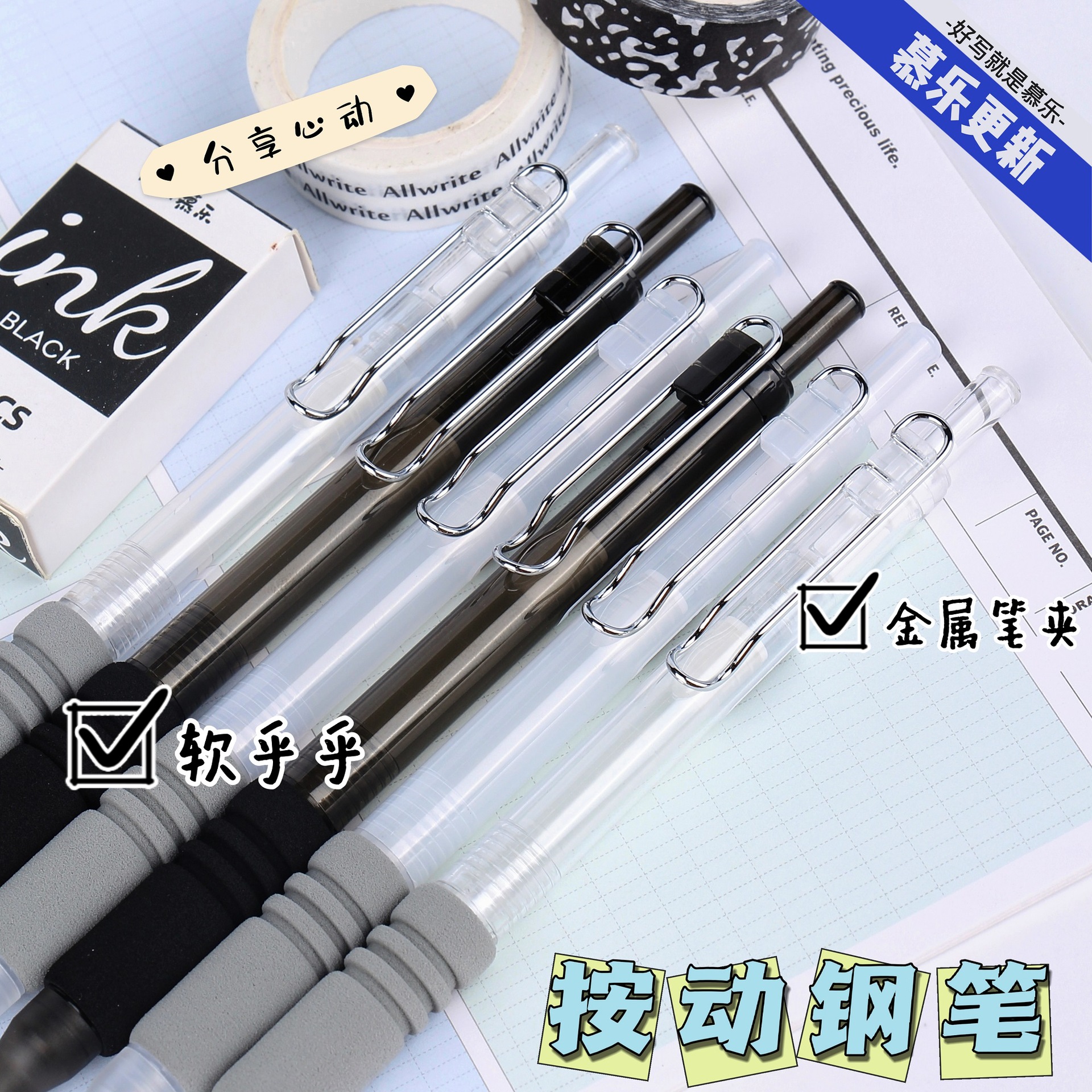 mueller 8616 transparent push pen ins good-looking simple soft grip posture practice pen ef ming tip pen 中文版