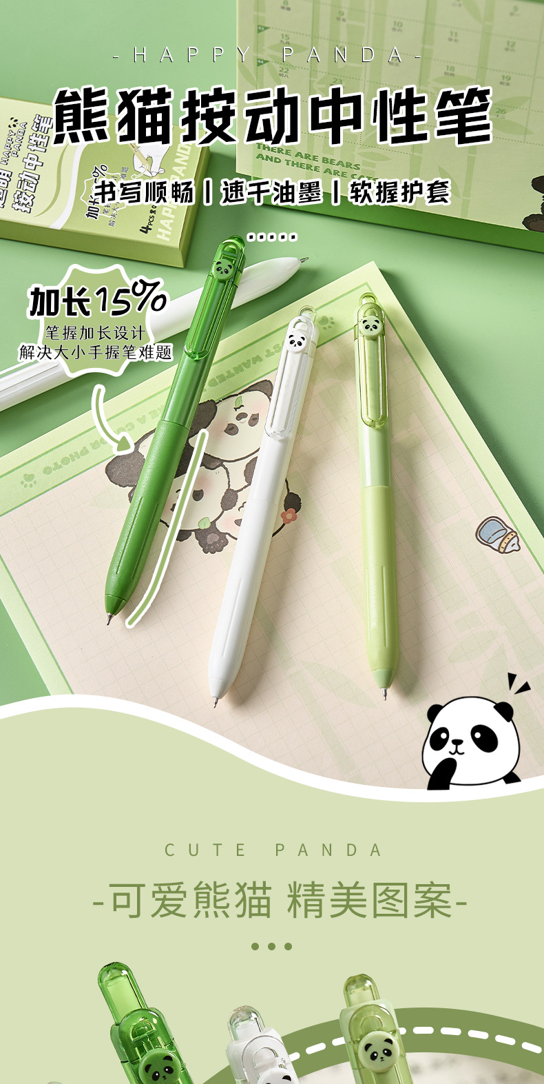 creative new panda press gel pen good-looking cartoon st nib quick-drying brush question pen soft grip cover practice pen for calligraphy 中文版