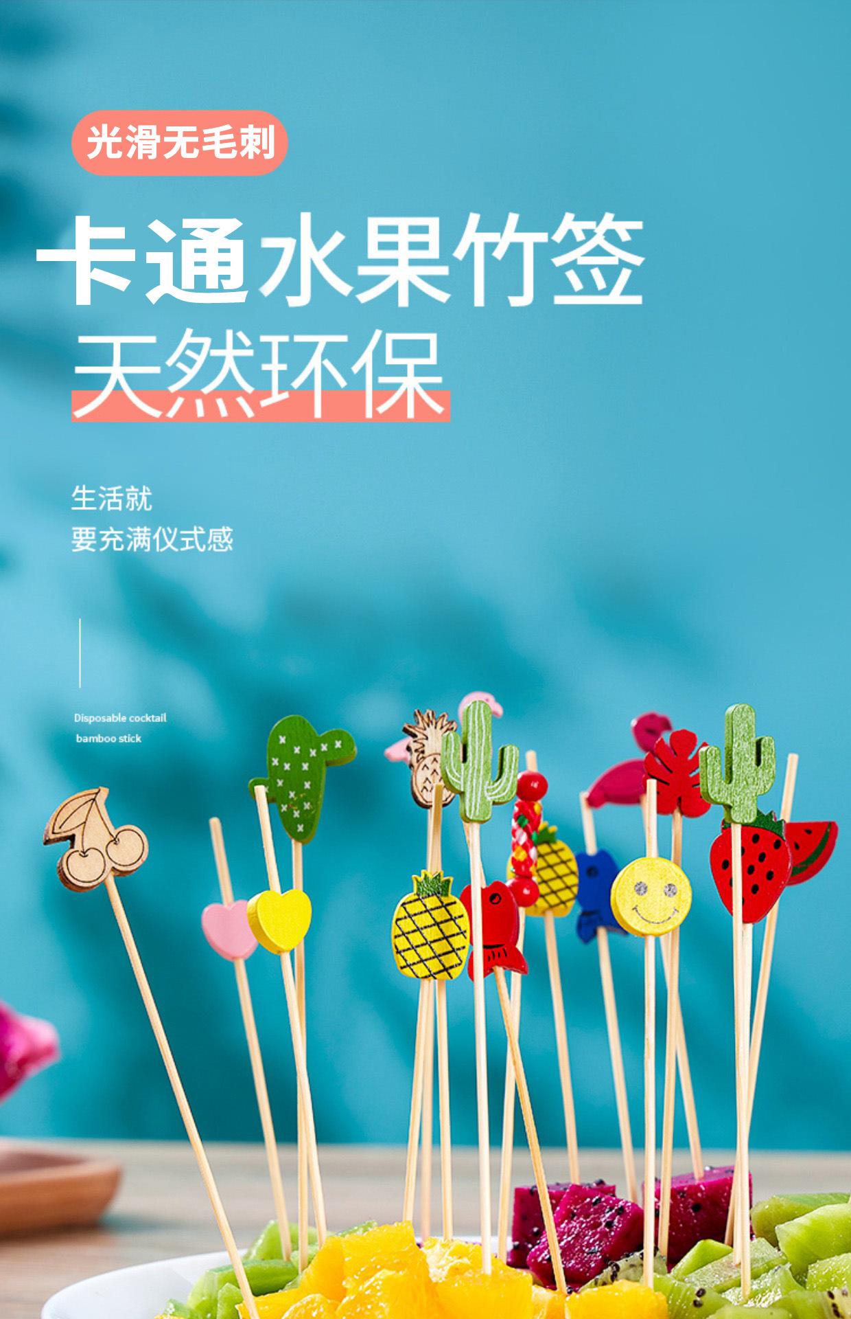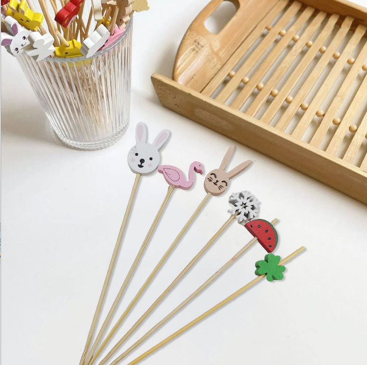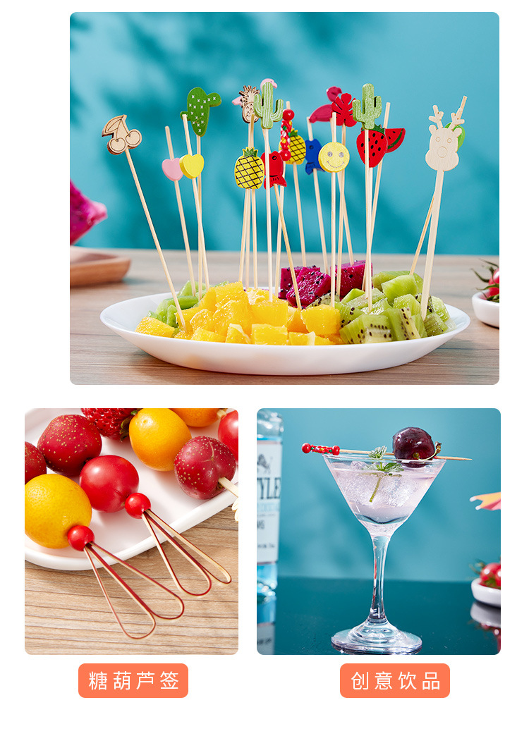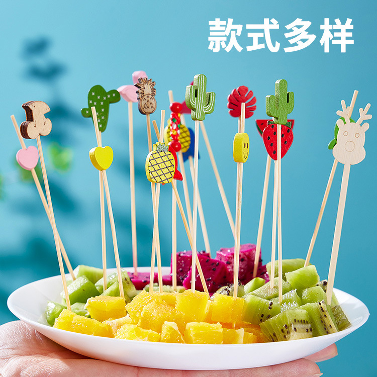 disposable fruit toothpick cute cartoon bamboo stick mini sugar gourd stick home fruit fork cocktail decoration prod