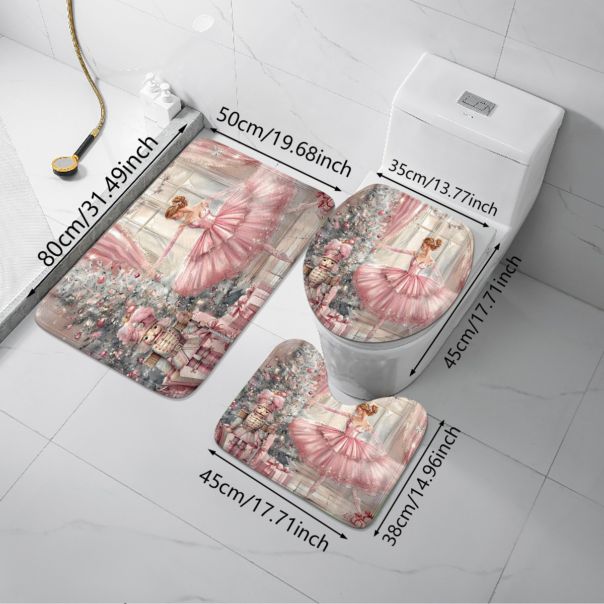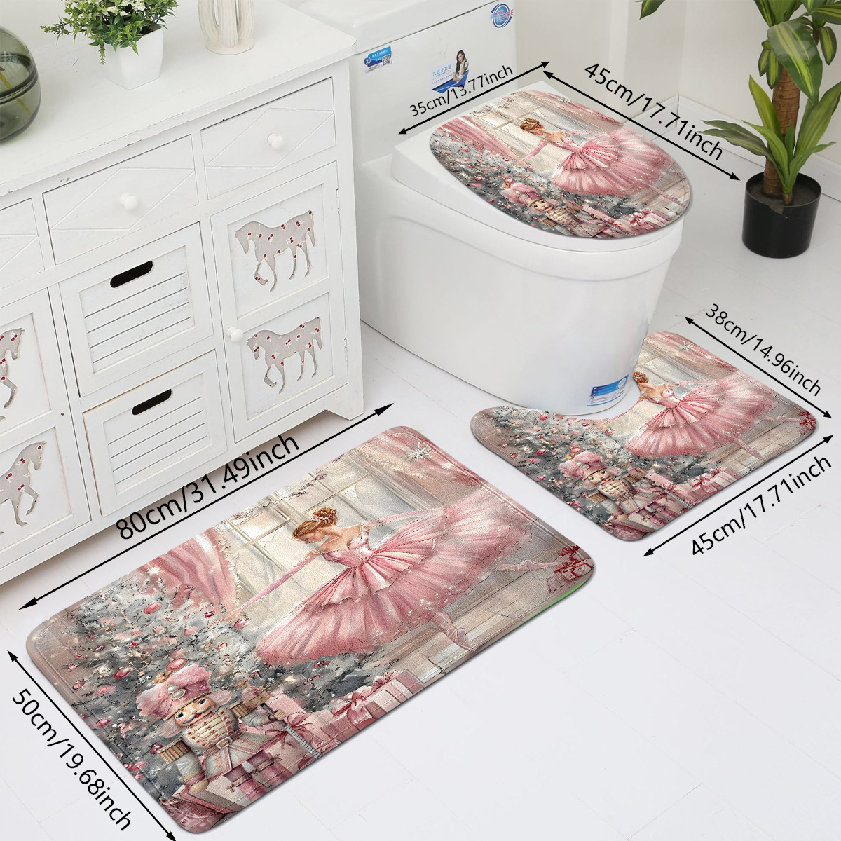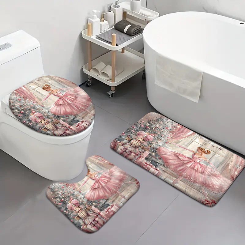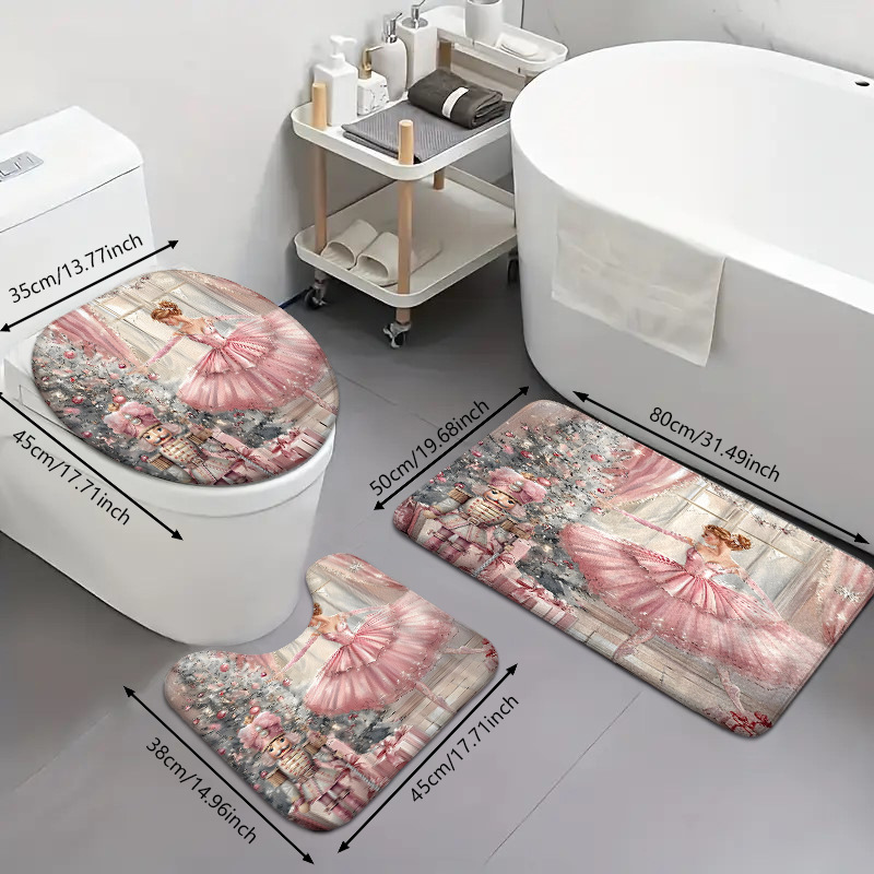 ballet dancer three-piece cashmere-like bathroom mats toilet lid toilet mat 中文版