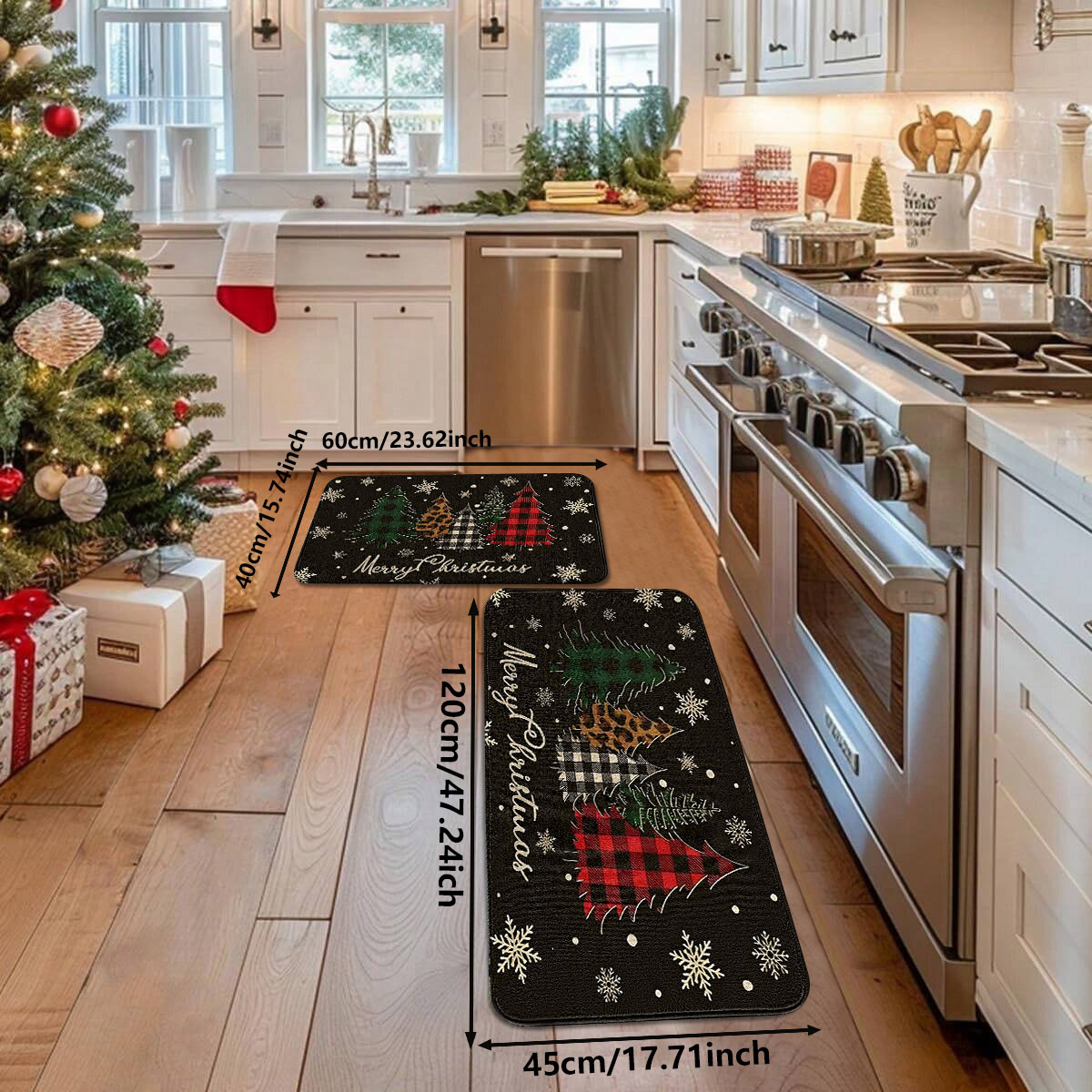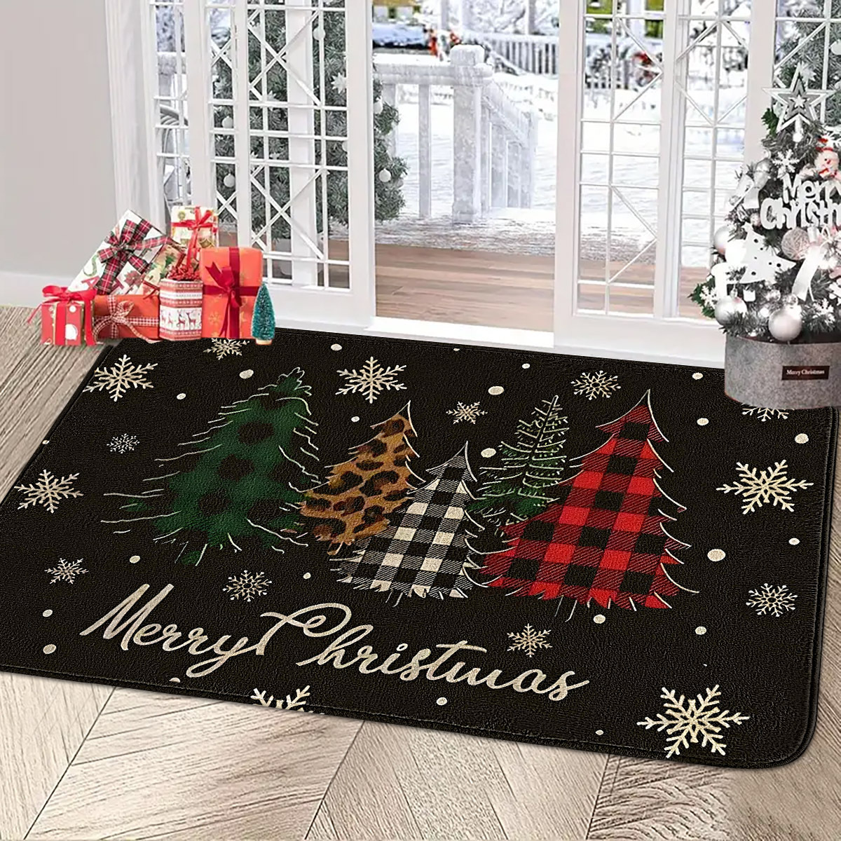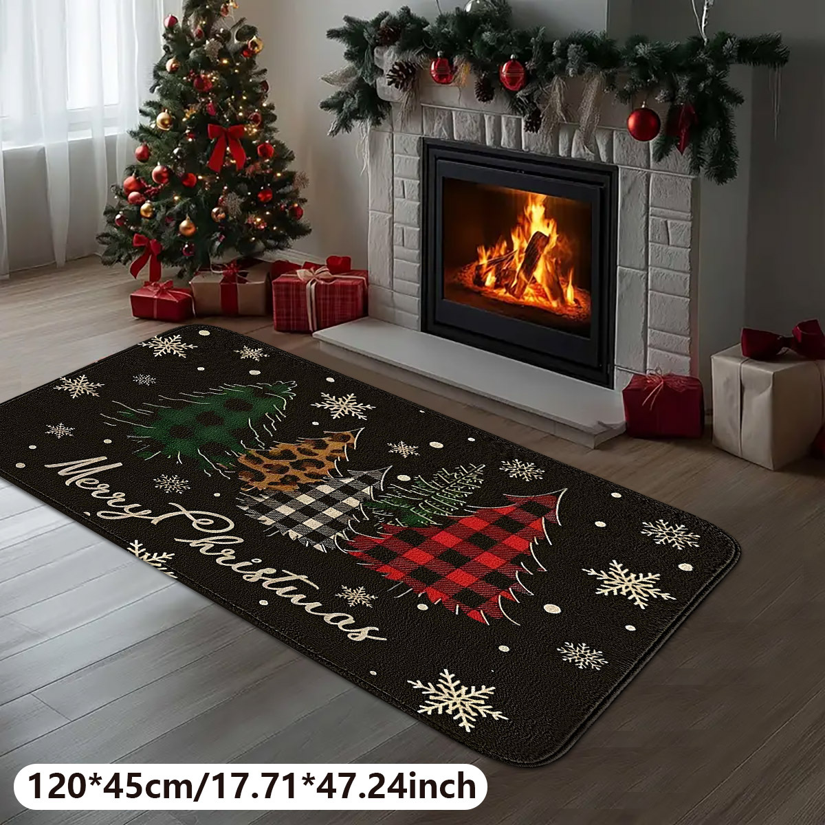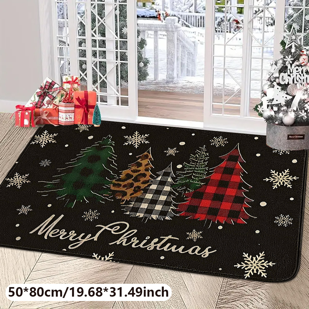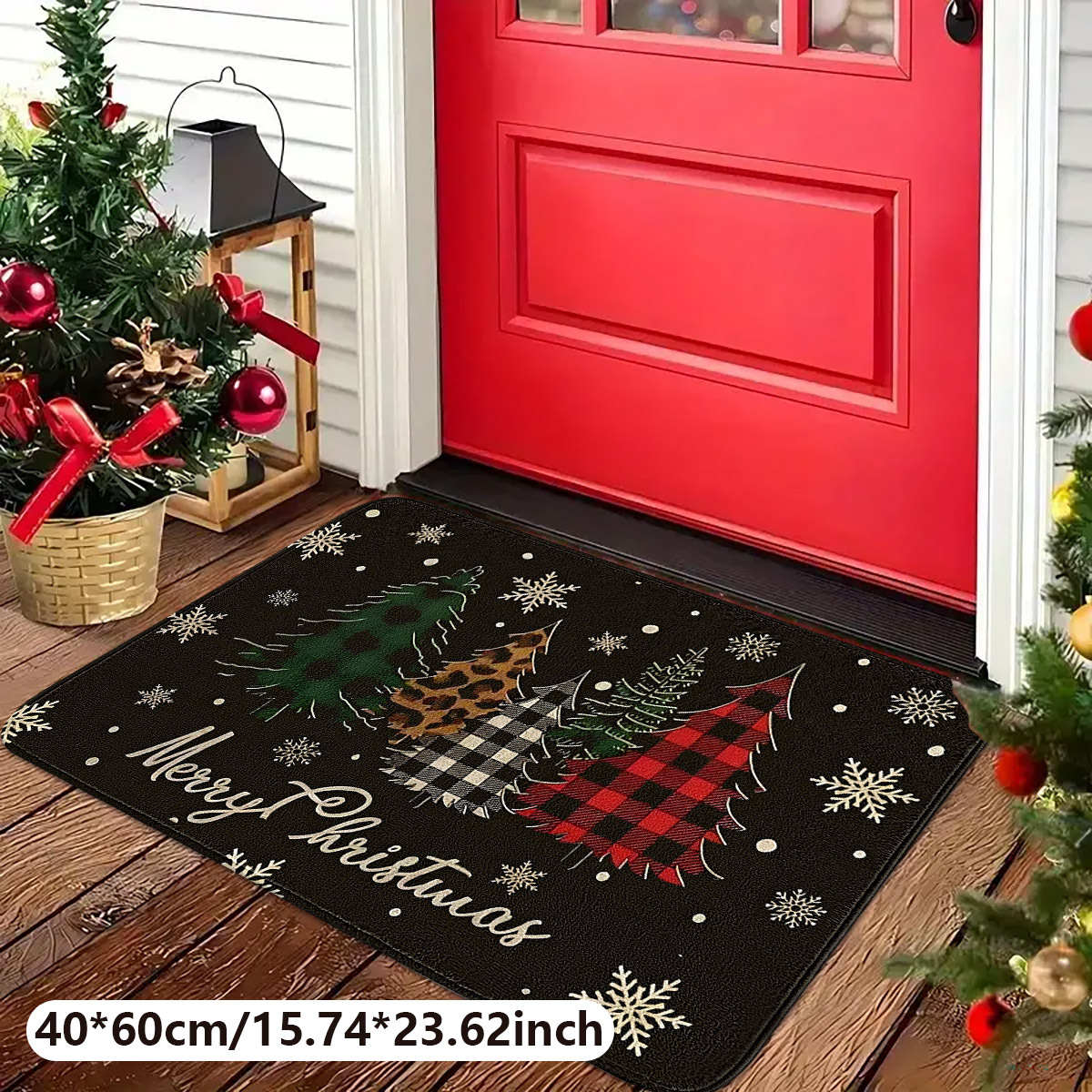 christmas plaid tree flannel floor mat door mat 中文版