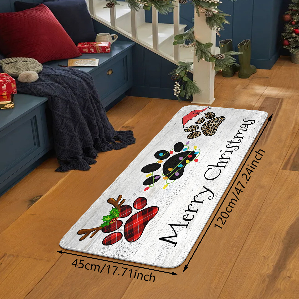 christmas dog paw flannel floor mat door cushion sofa cushion 中文版