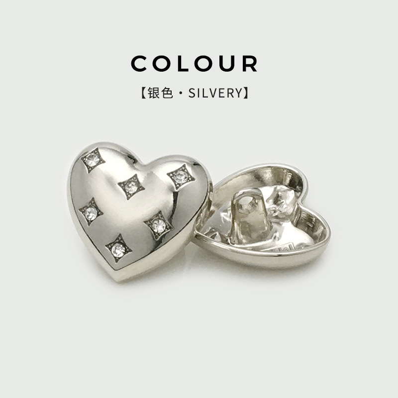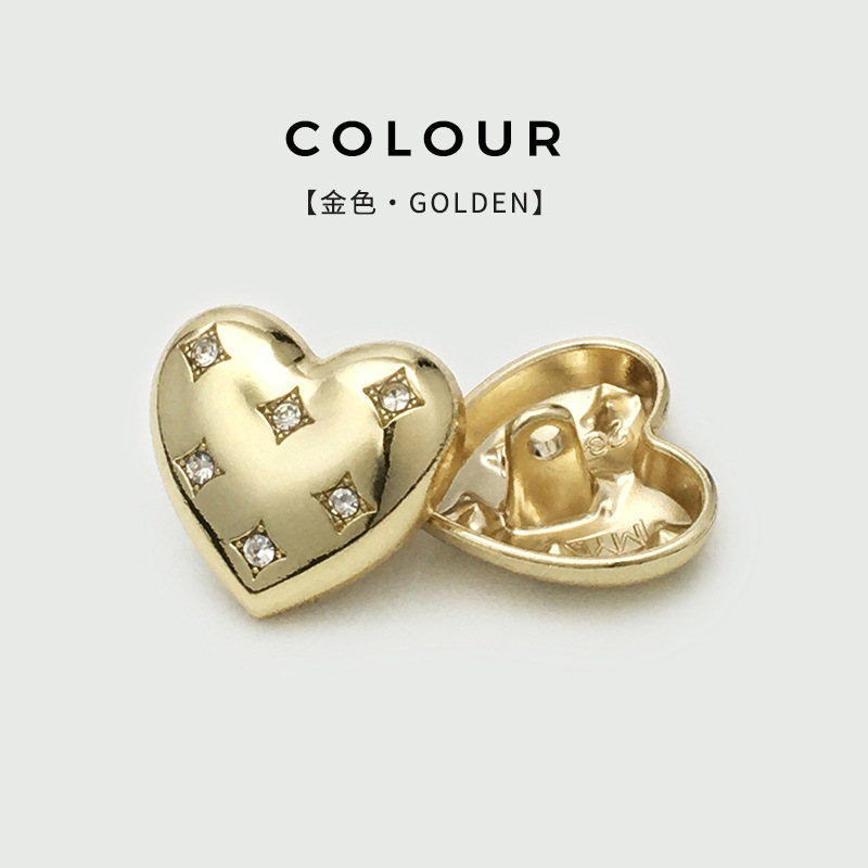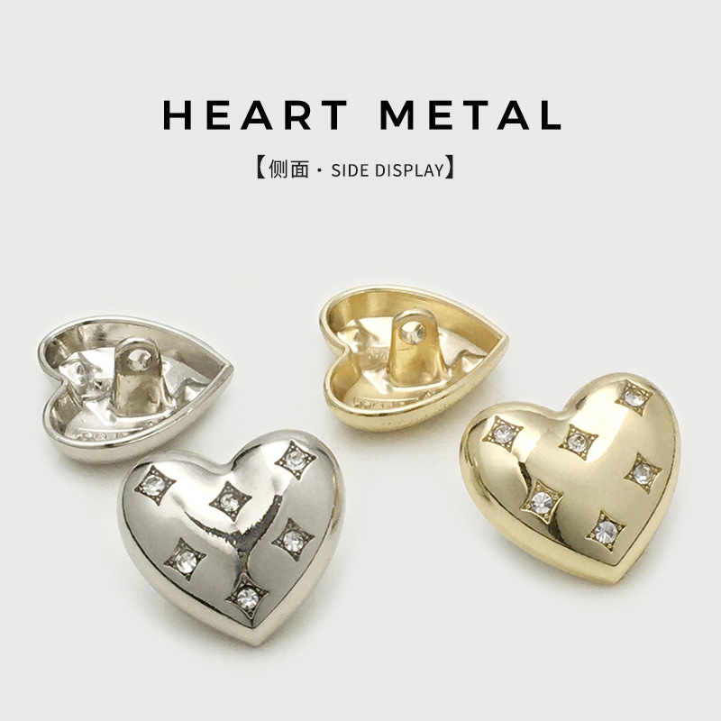 women's high-end dress suit button sweater all-match heart-shaped buckle high-end metal heart heart shape diamond button 中文版