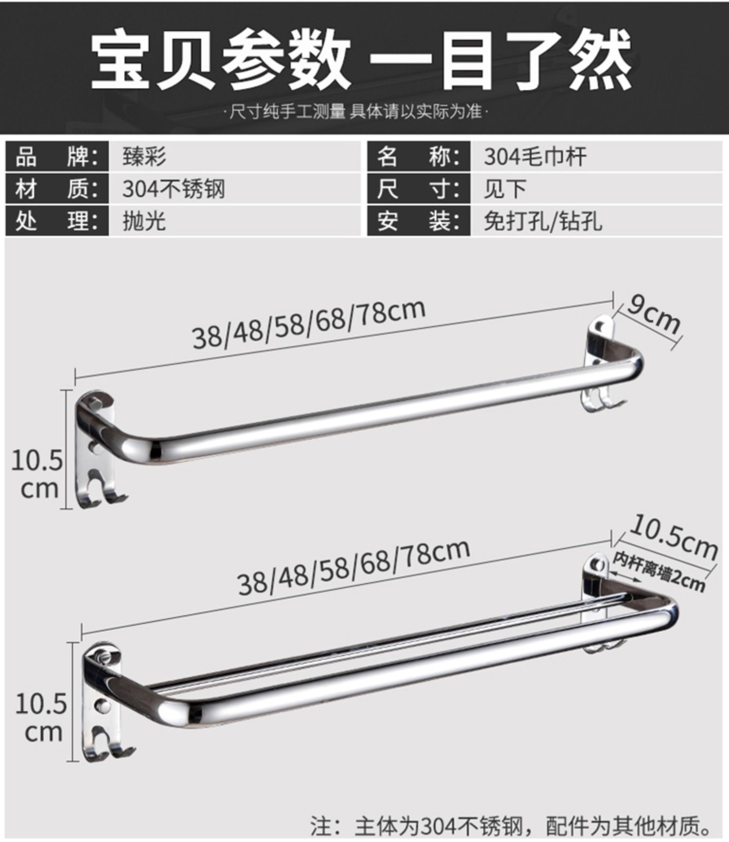 | 304 stainless steel thickened semicircle double rod 80cm | ¥19.0 | 9996 piece available |