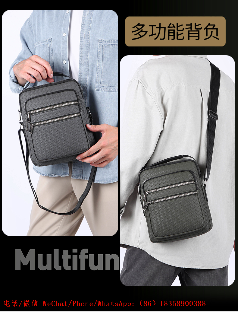 foreign trade factory woven high quality business casual multi-functional large capacity versatile light luxury waterproof men's shoulder bag