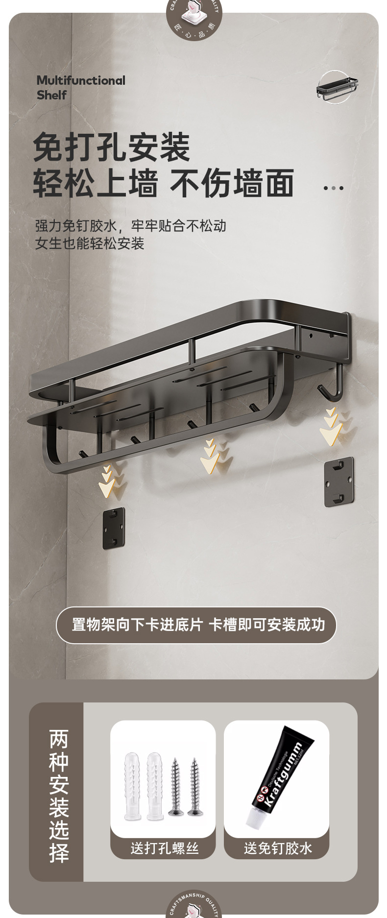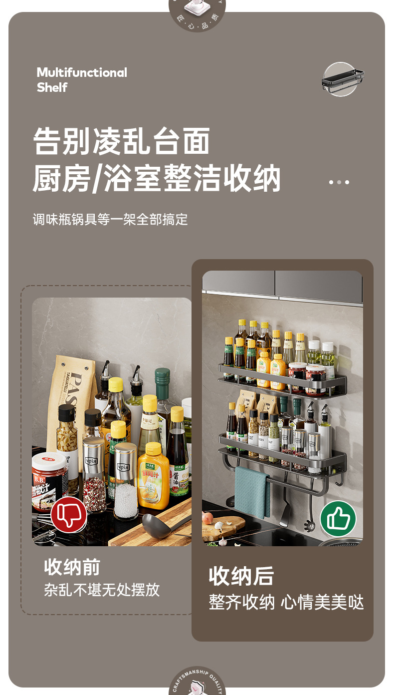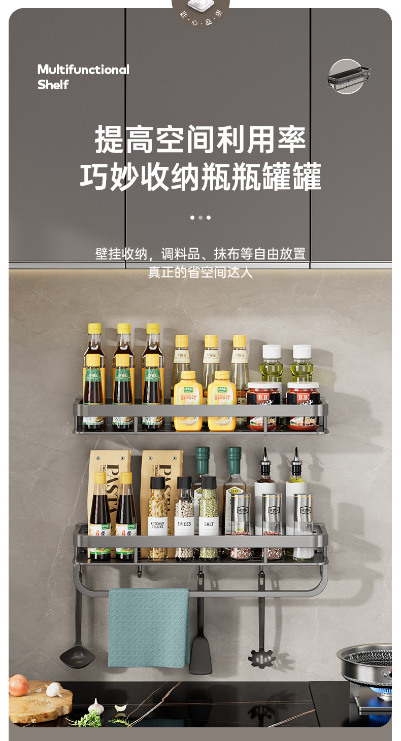 gun gray-double-layer seasoning rack 60cm with rod