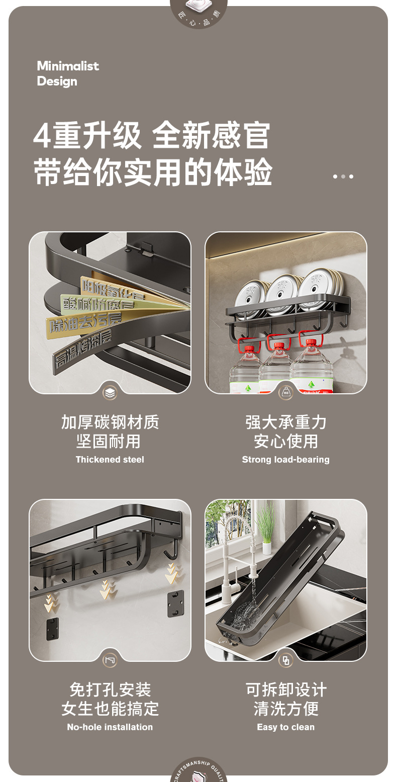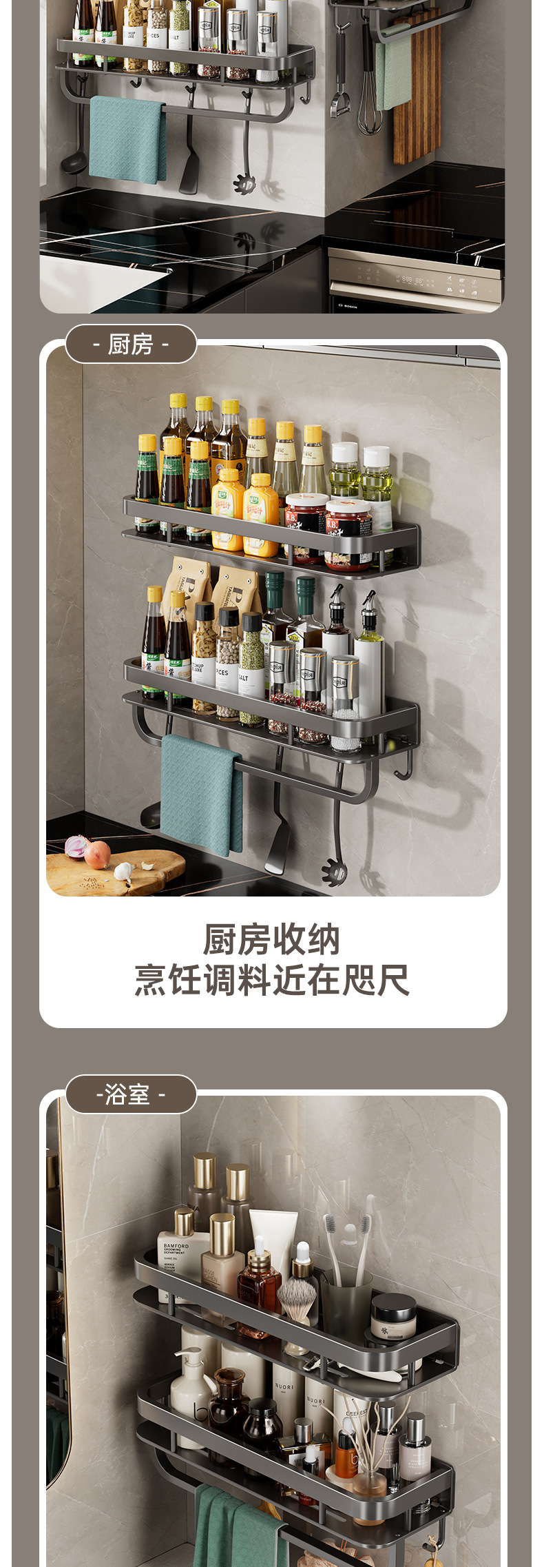 black-single-layer seasoning rack 60cm