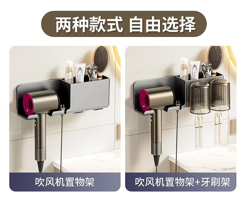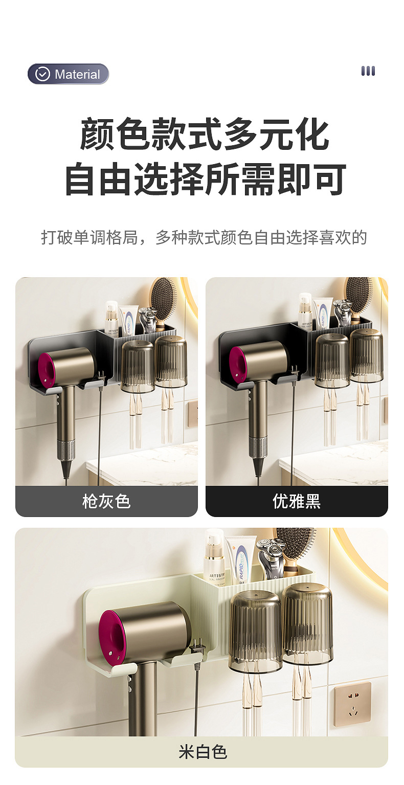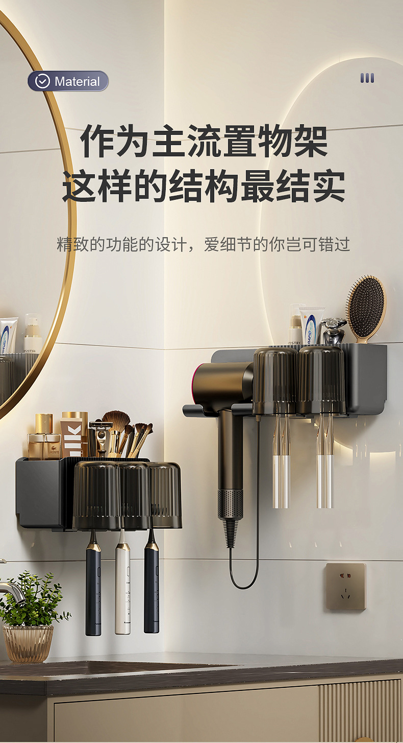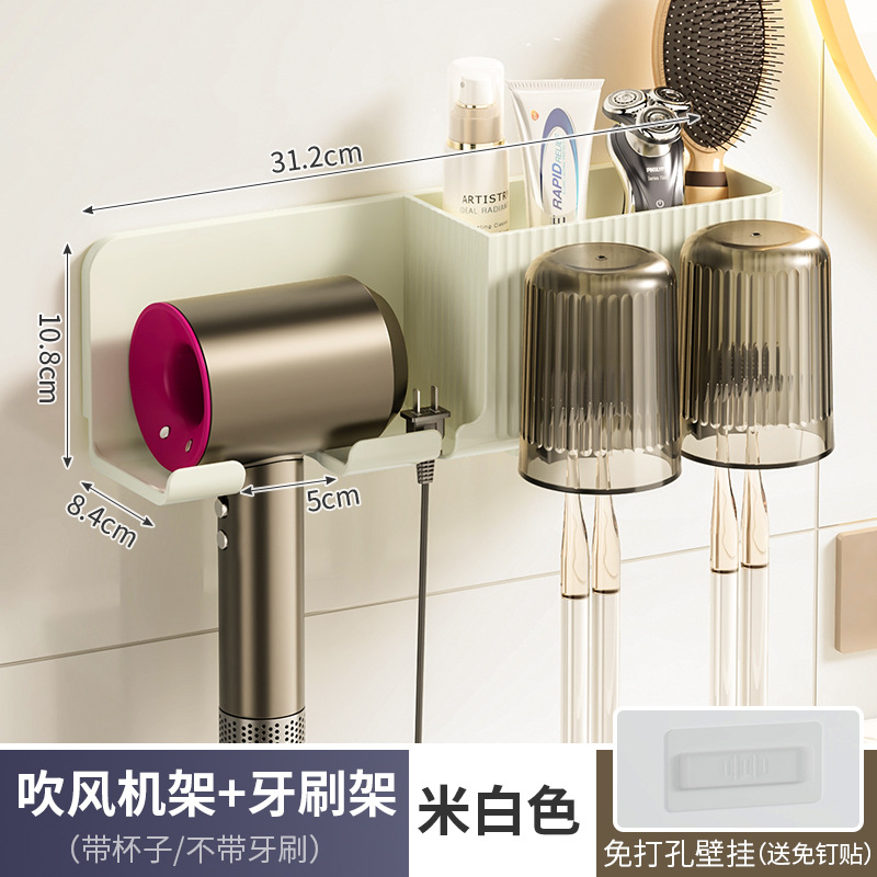 beige storage rack + toothbrush holder + washing cup 2] hair dryer rack