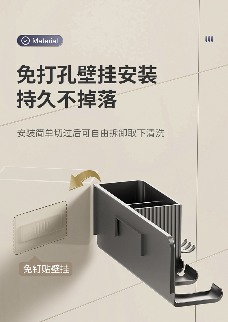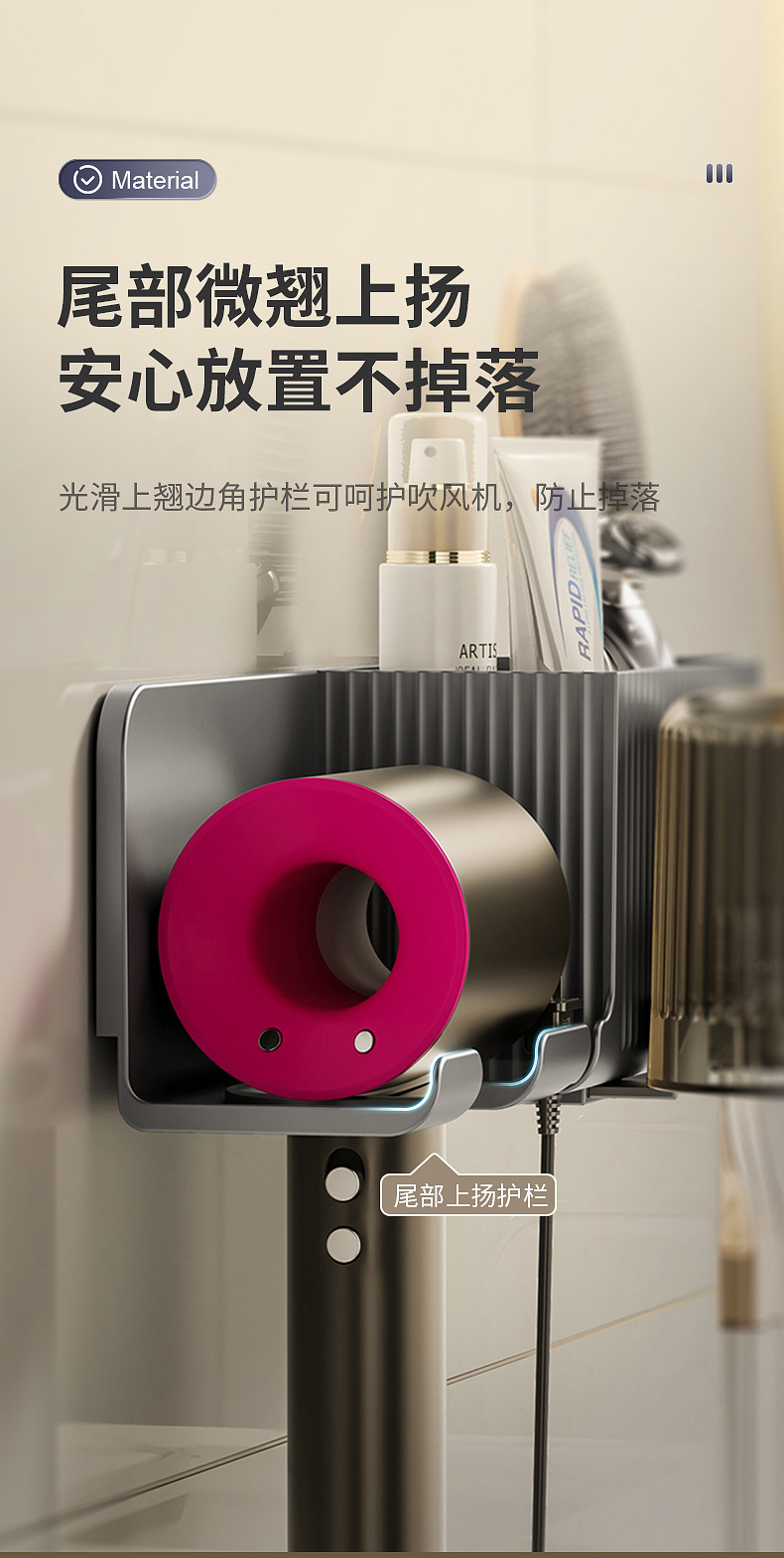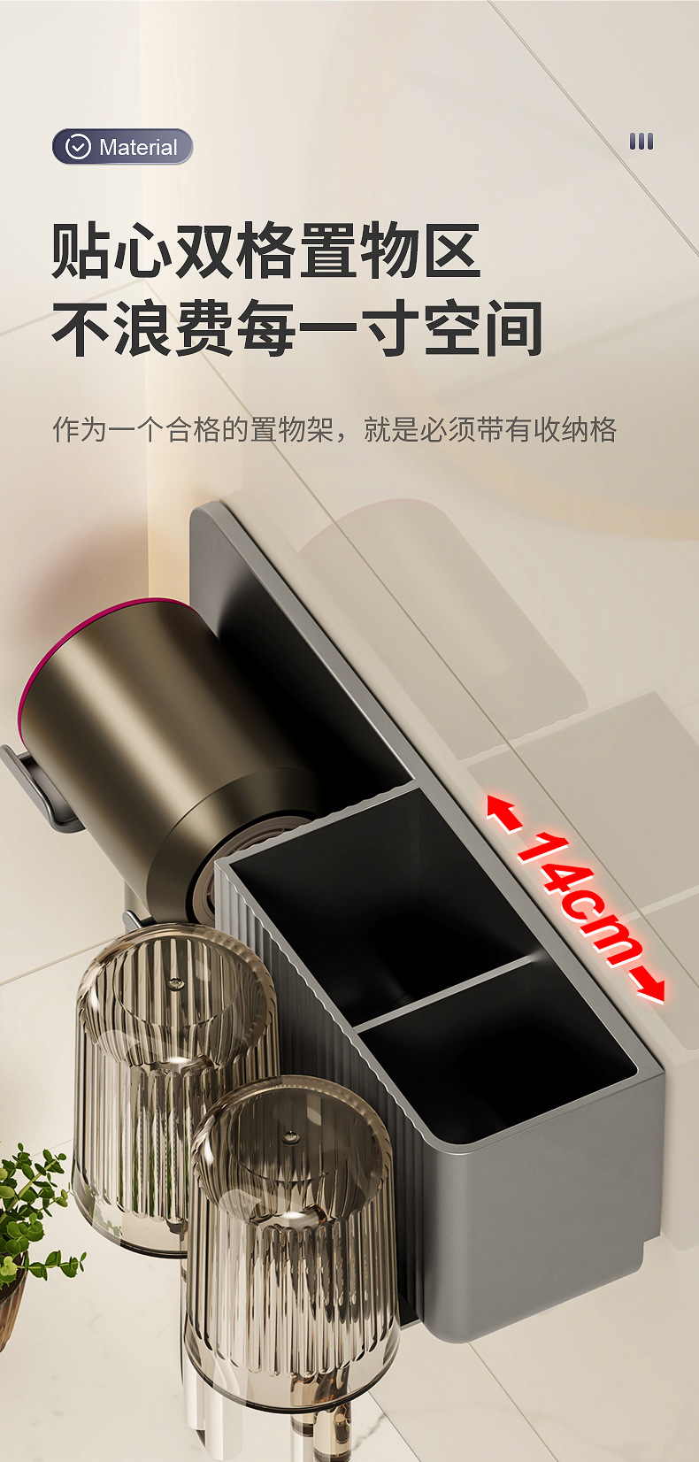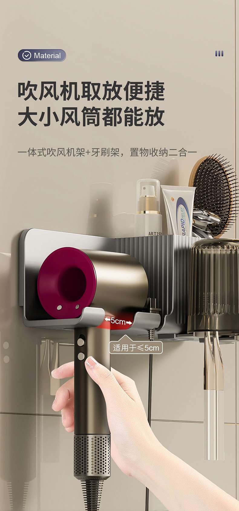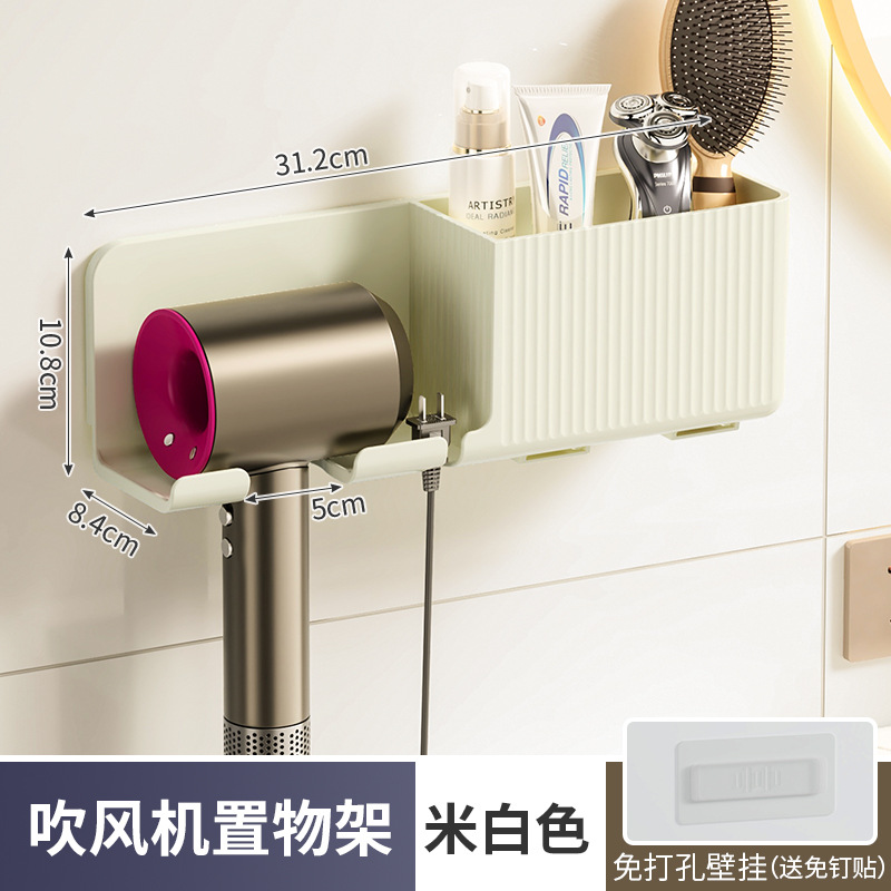 beige storage rack + toothbrush holder] hair dryer rack