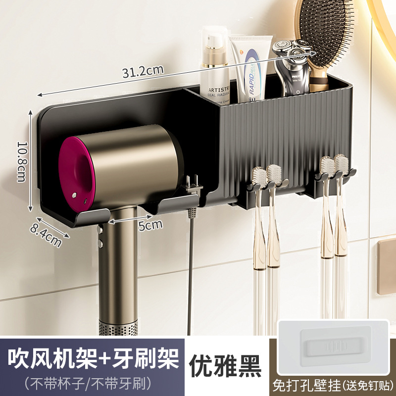 elegant black [storage rack + toothbrush holder + washing cup 2] hair dryer rack