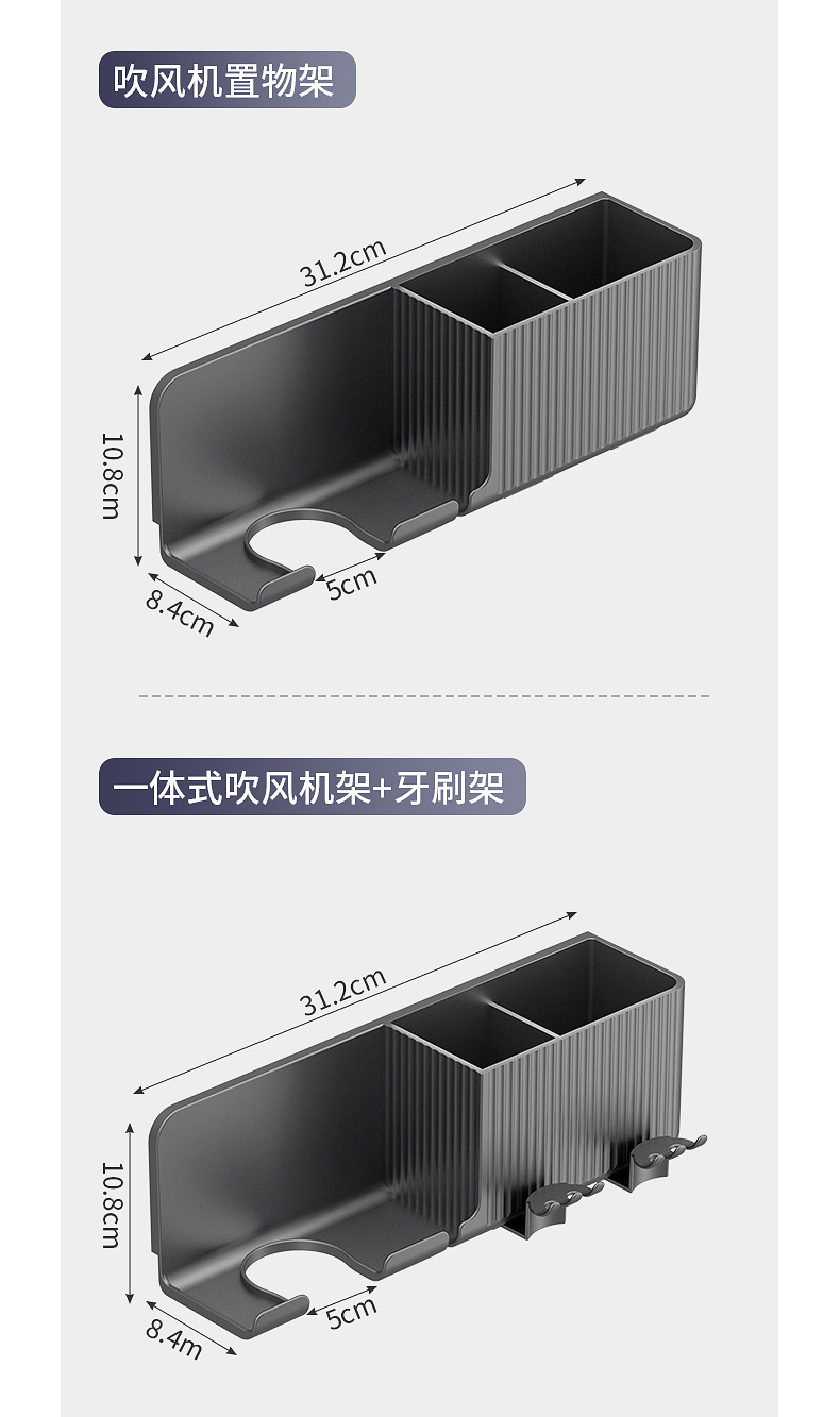 gun gray [storage rack + toothbrush holder] hair dryer rack