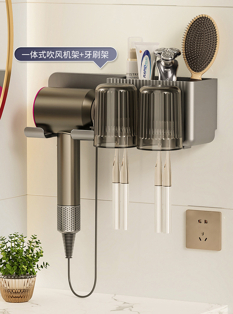 gun gray [storage rack + toothbrush holder + washing cup 2] hair dryer rack