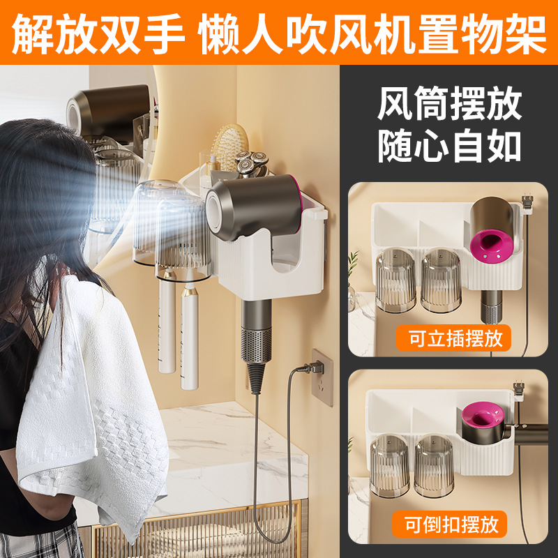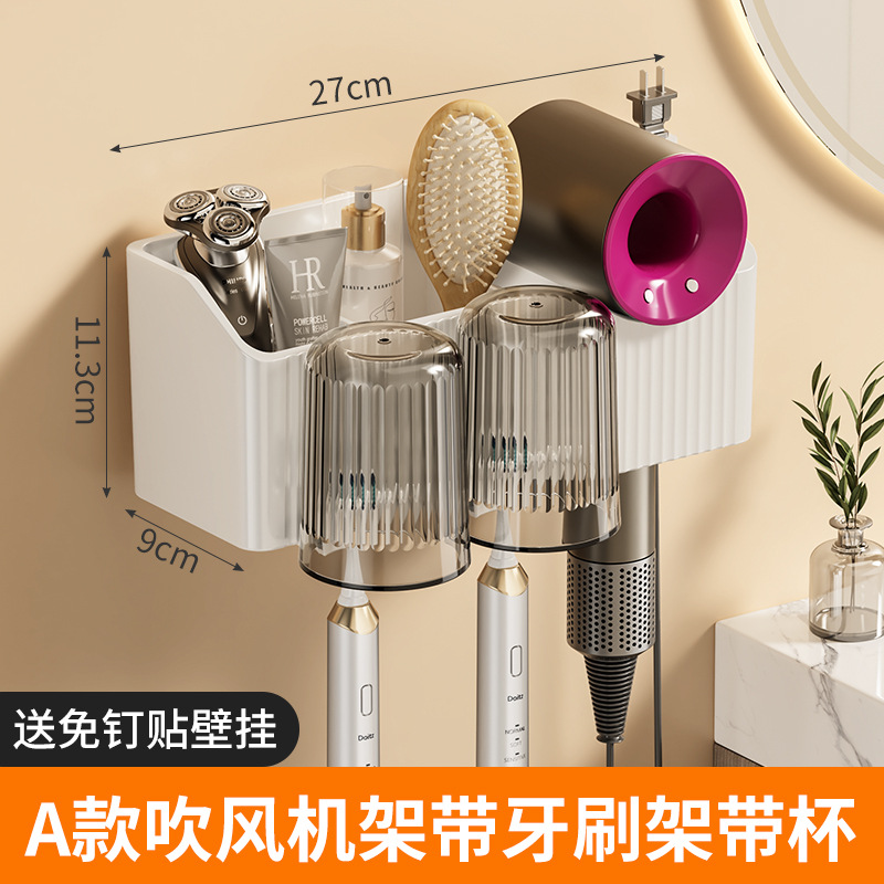 white a model hair dryer rack + toothbrush holder + cup