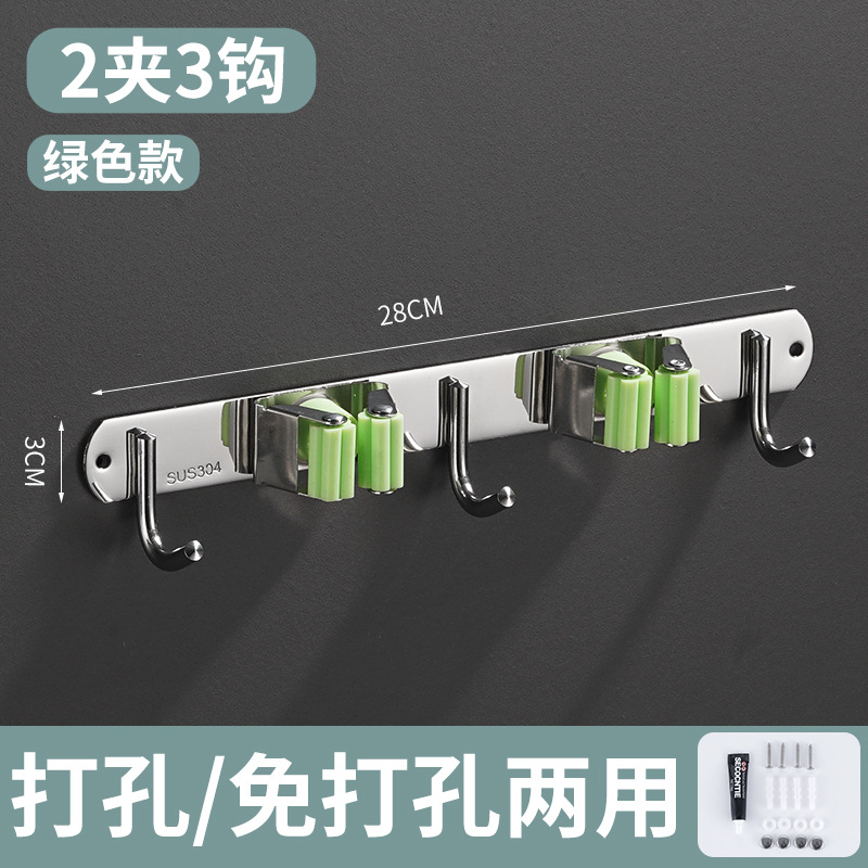 [stainless steel green hook] 2 clips 3 hooks