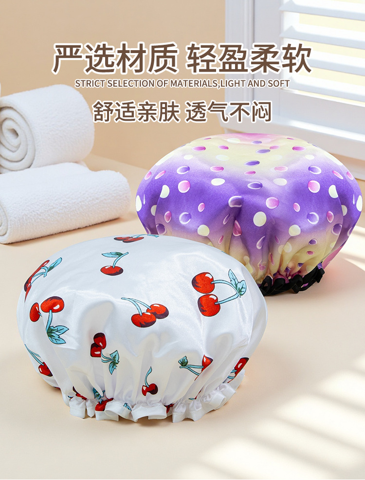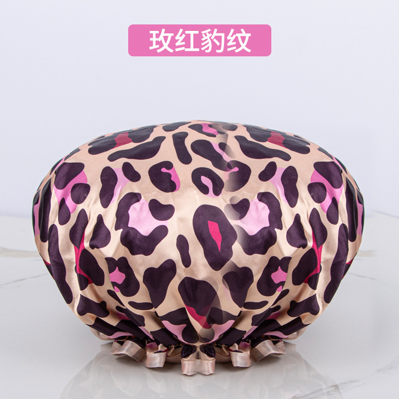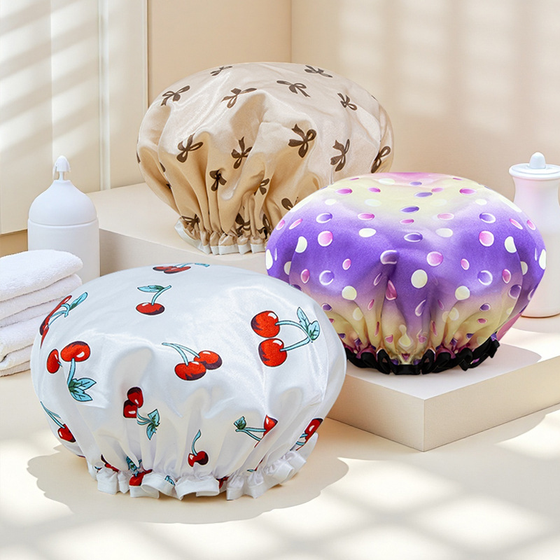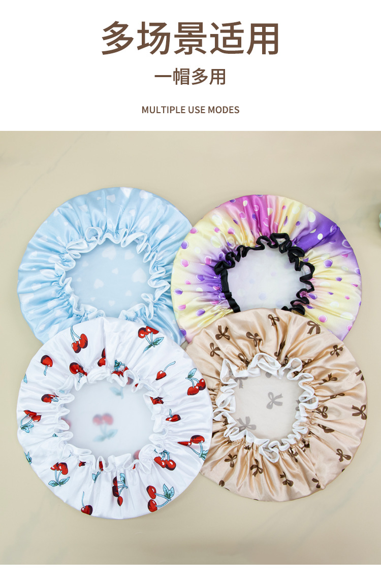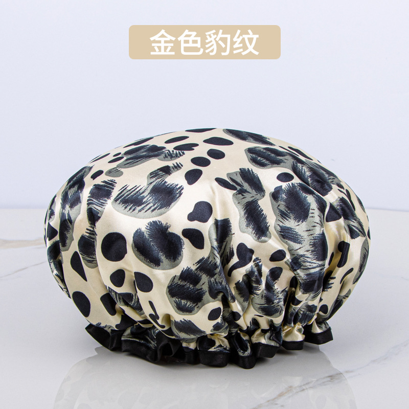 double-layer shower cap female waterproof bath headgear bronzing printed bath hair cover home use dustproof toupee 中文版