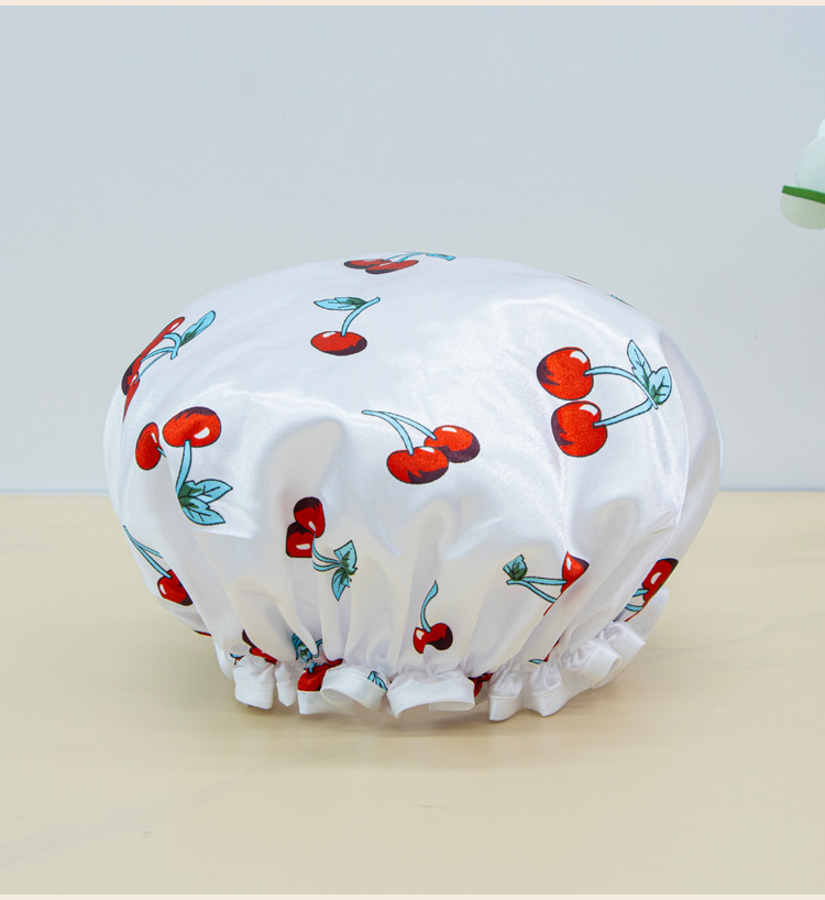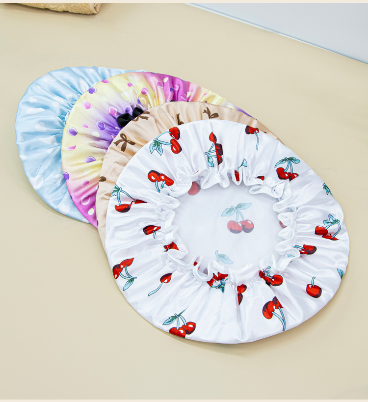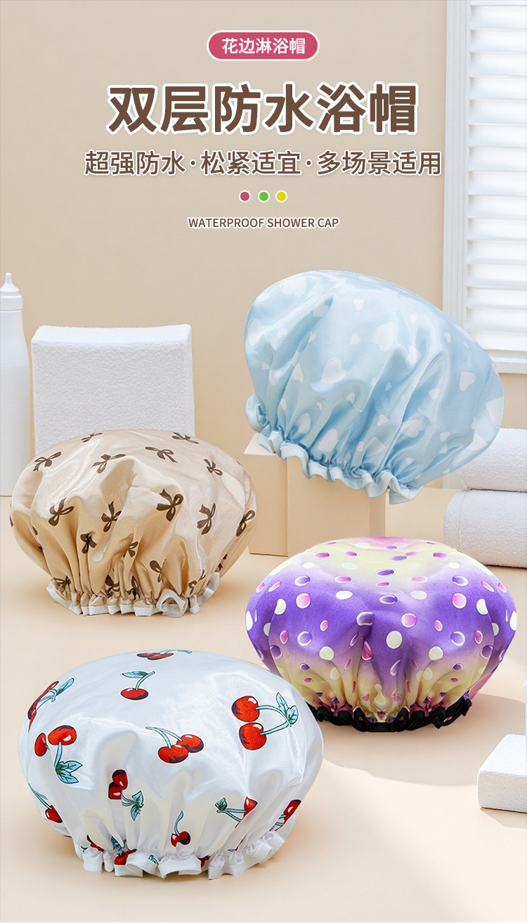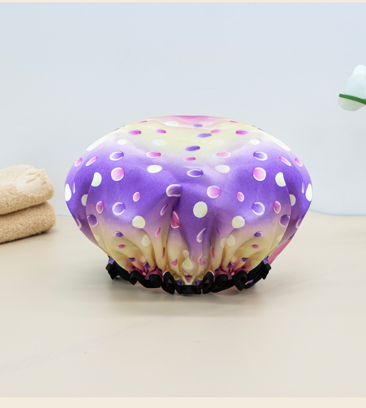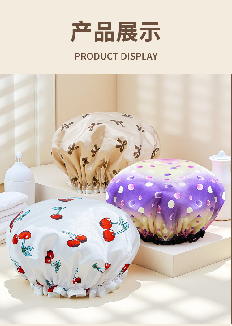 double-layer shower cap female waterproof bath headgear bronzing printed bath hair cover home use dustproof toupee 中文版