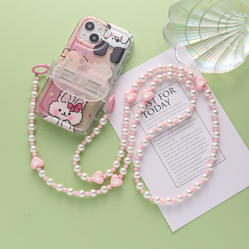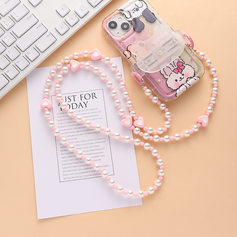 rabbit pink beaded crossbody chain diy mobile phone charm double buckle long lanyard crossbody chain lanyard strap bag with chain 中文版