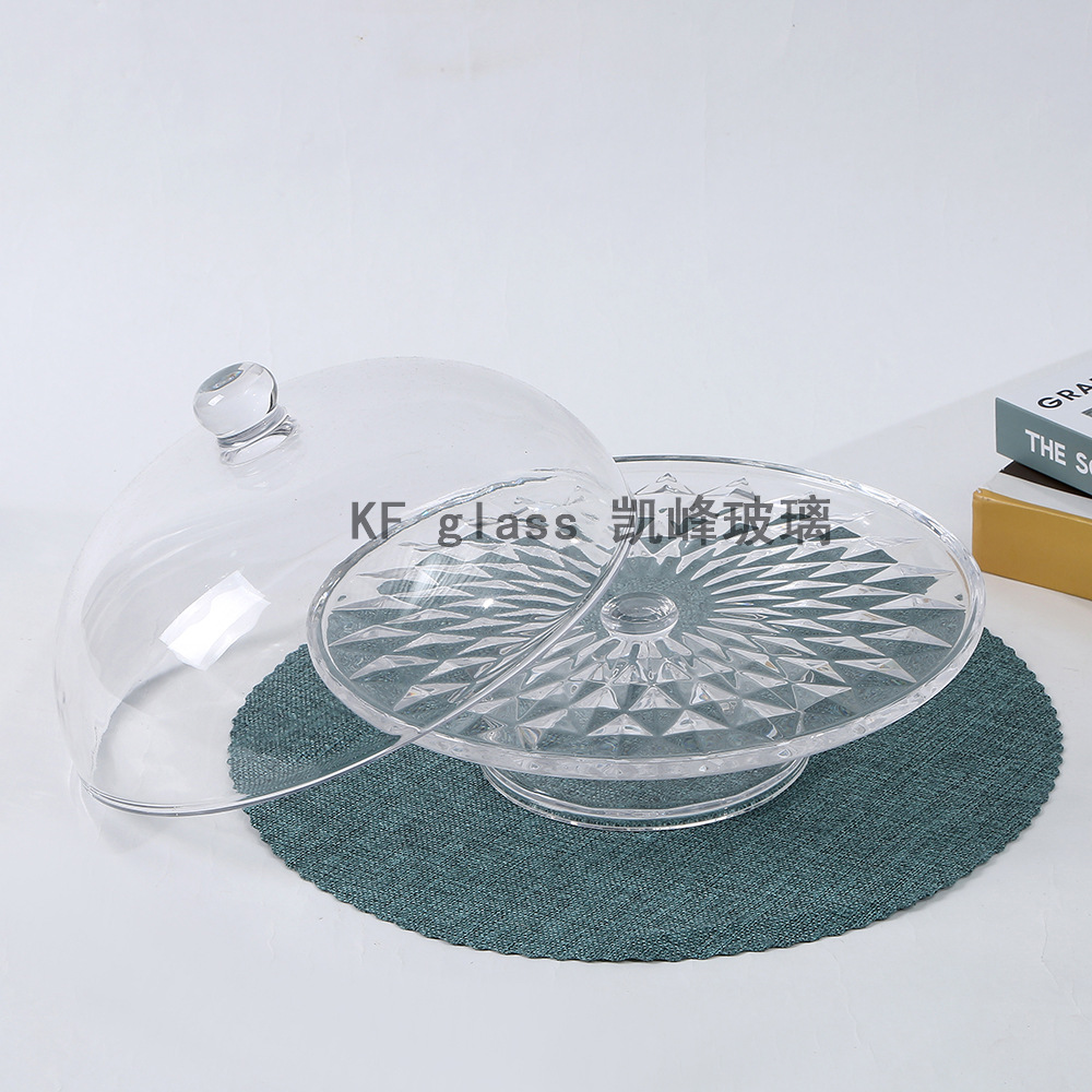 creative goblet fruit plate pastry fruit plate living room transparent glass cake plate with lid round imitation crystal dim sum plate 中文版