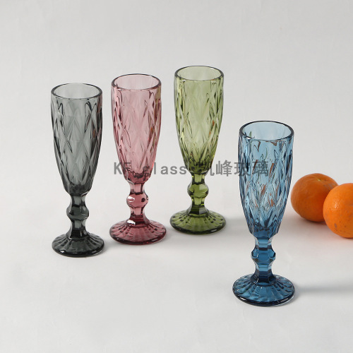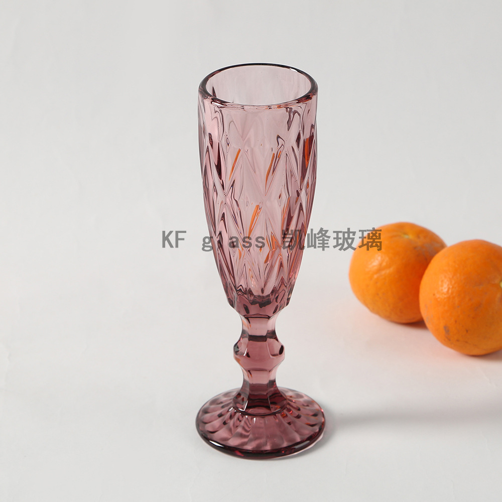retro color relief champagne glass goblet creative small size juice cup wine glass factory direct sales wholesale 中文版