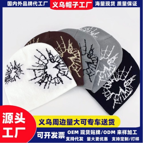 cross-border cullet jacquard knitted hat street hip-hop trend american beanie hat outdoor keep warm earlap woolen hat 中文版