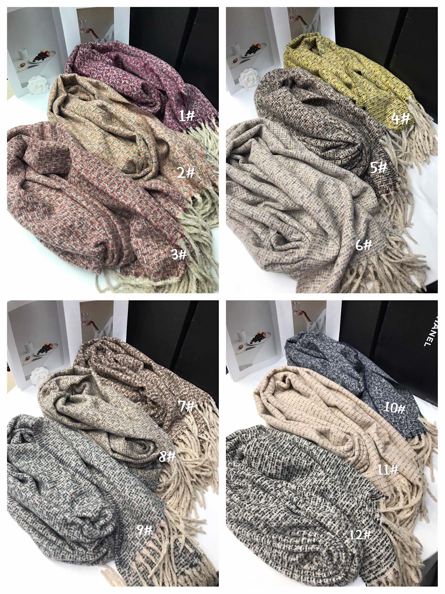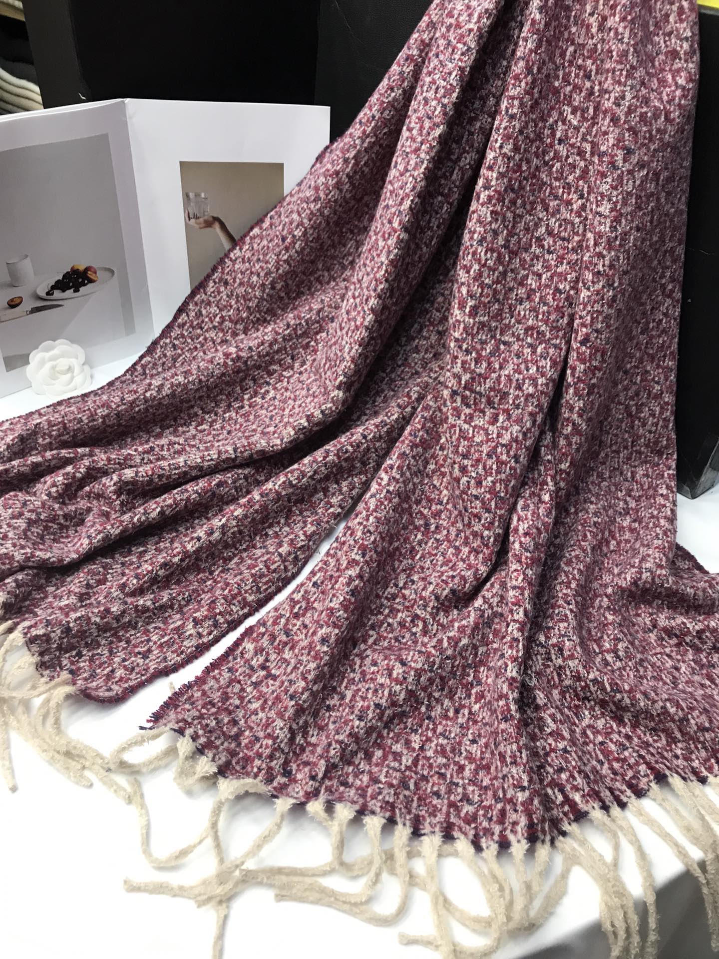 New model, order-specific, Chanel-inspired, material: polyester, size: 60*180, weight: 249 grams, item number: 88115270