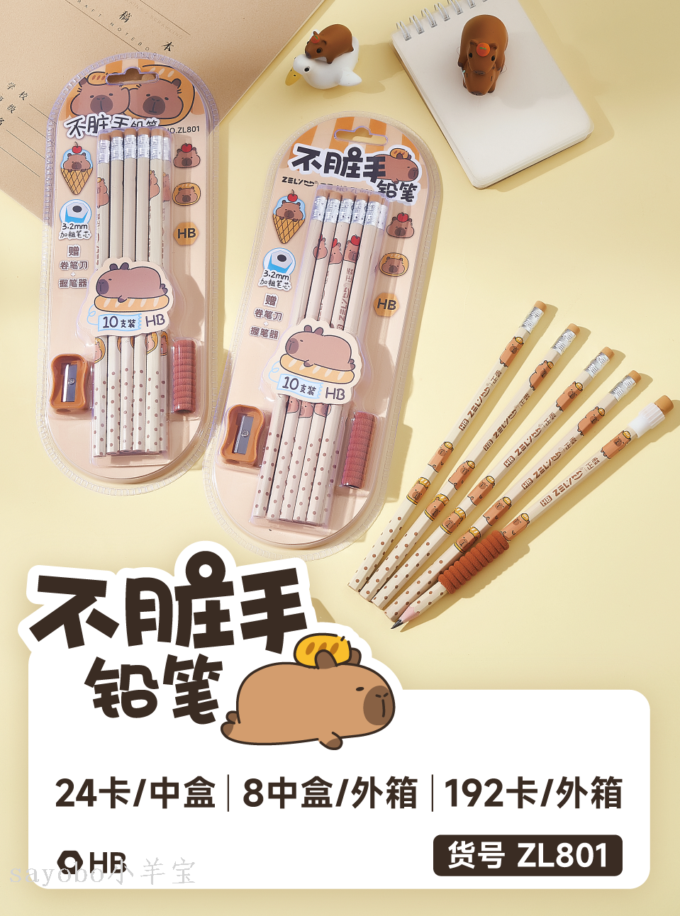 capibala "clamshell packaging hb non-dirty hands pencil environmentally friendly resin peace of mind use factory direct sales pencil