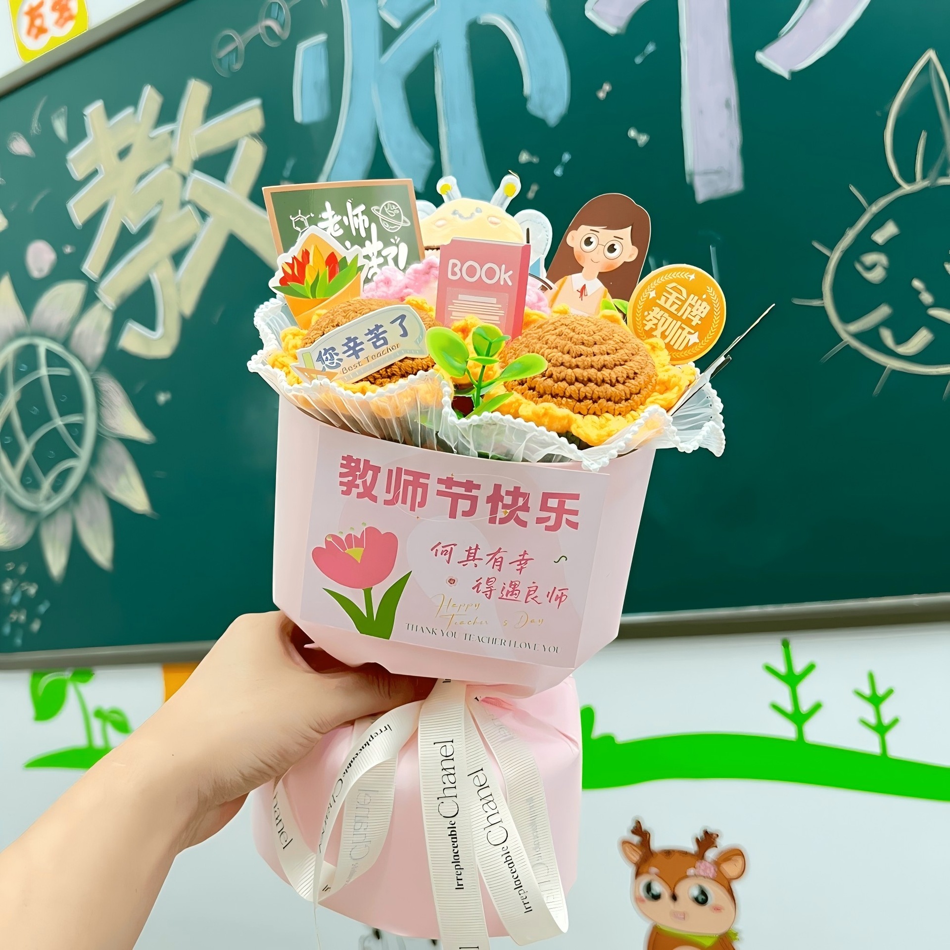 sunflower bee [pink] gift bag + greeting card + ribbon