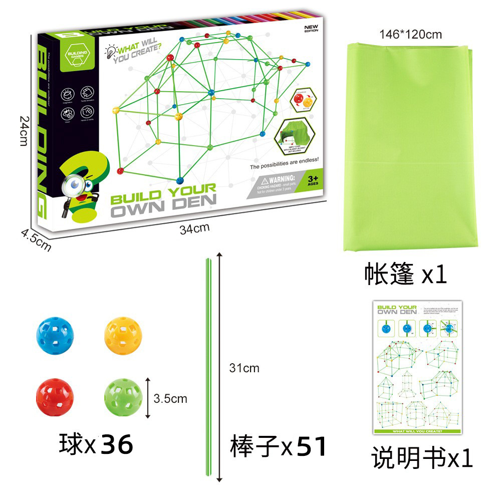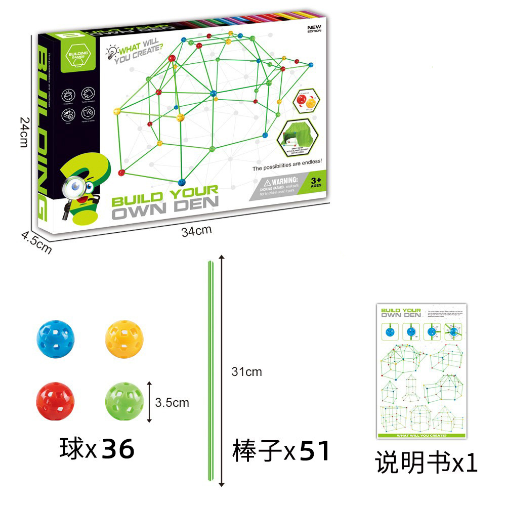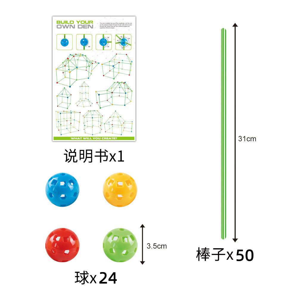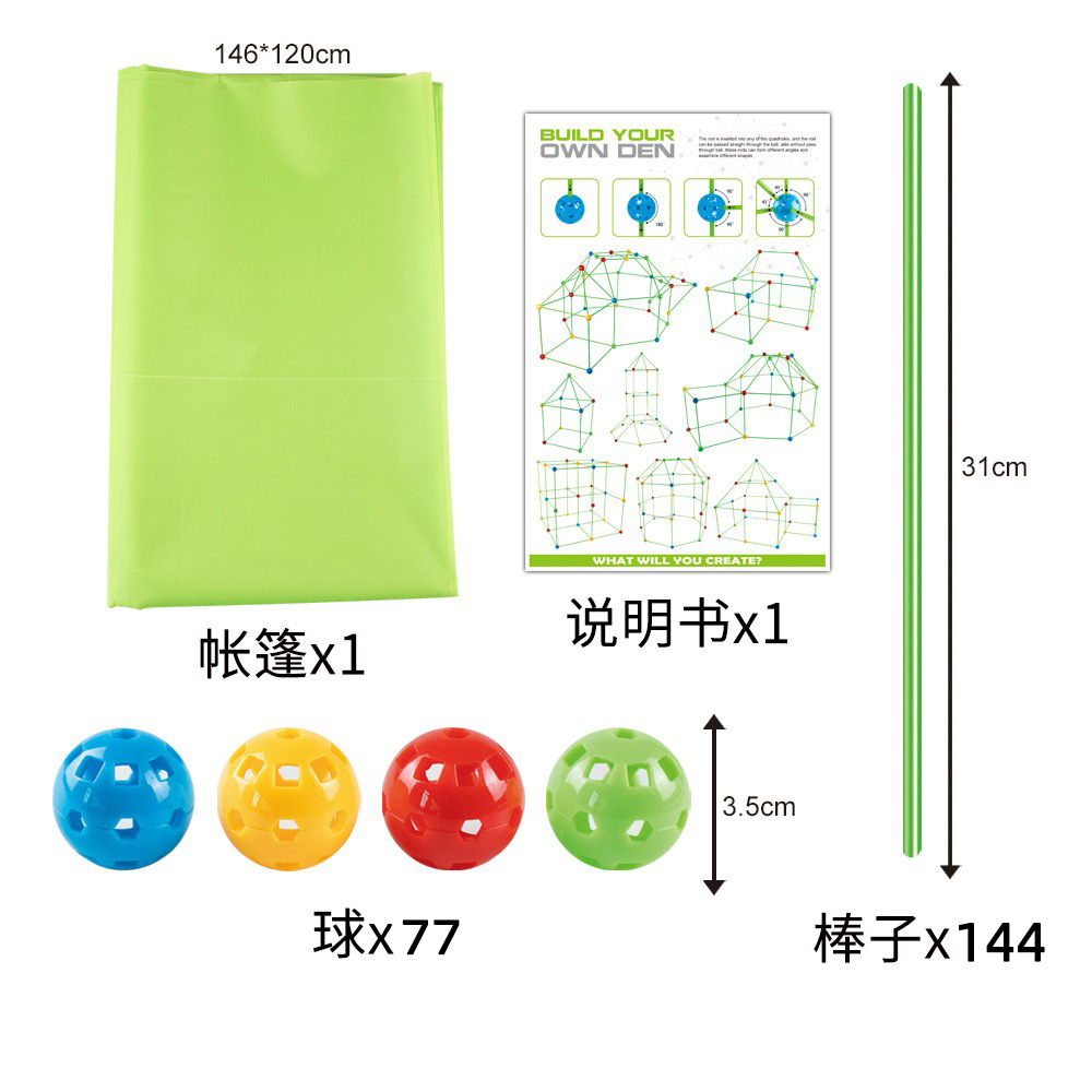 Combo 1: 36 balls + 51 tubes = 87 pieces (Color box size: 34*24*4.5CM) Weight: About 620G (with tent), About 520G (without tent).