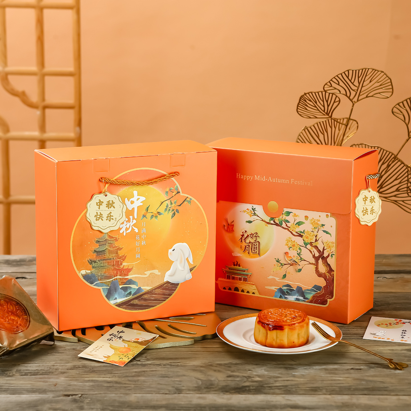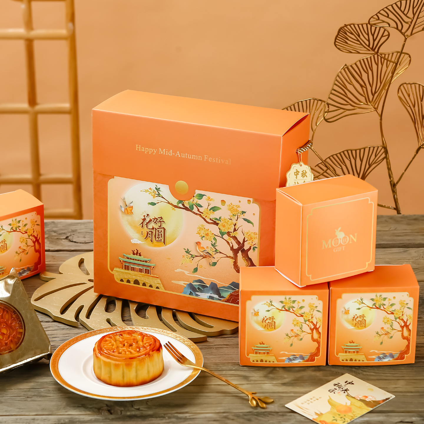 moon cake box box; light luxury orange gift box 12 pieces