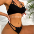 sexy lingerie, black pit cloth hanging ring strap halter bra bow t-back sexy lingerie suit 中文版