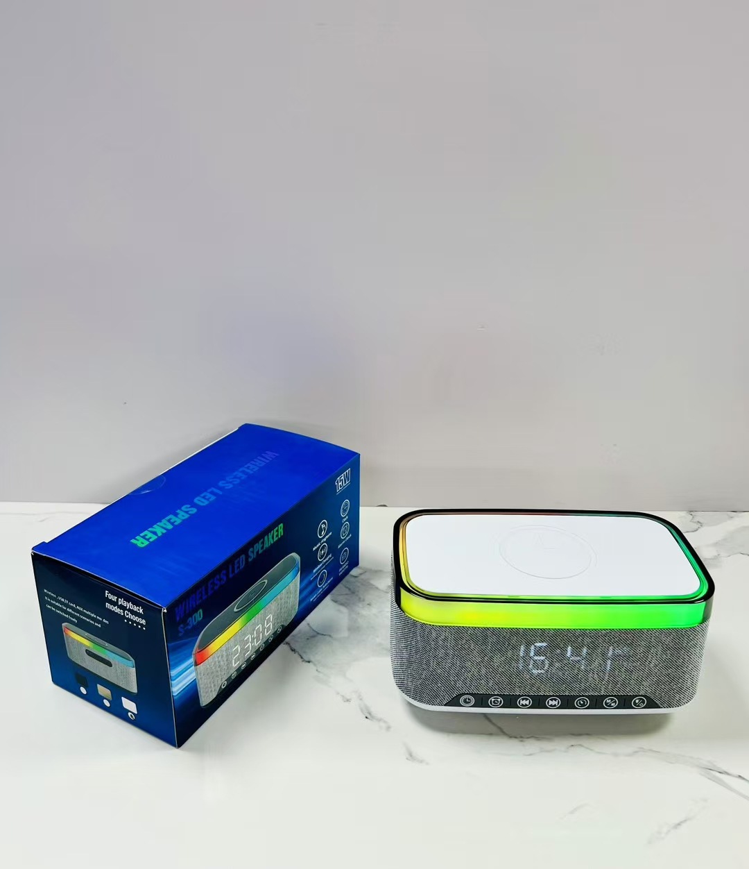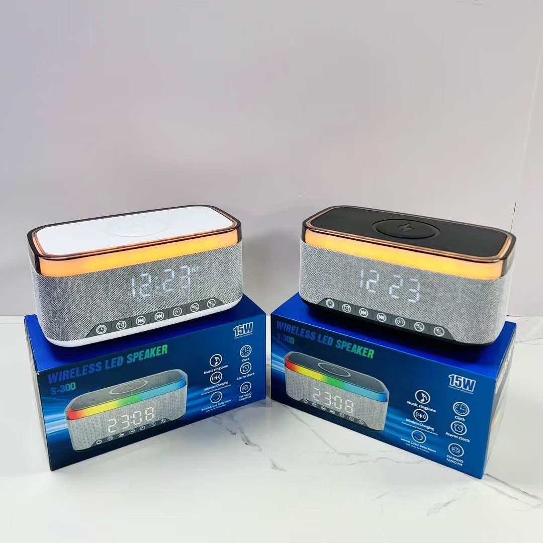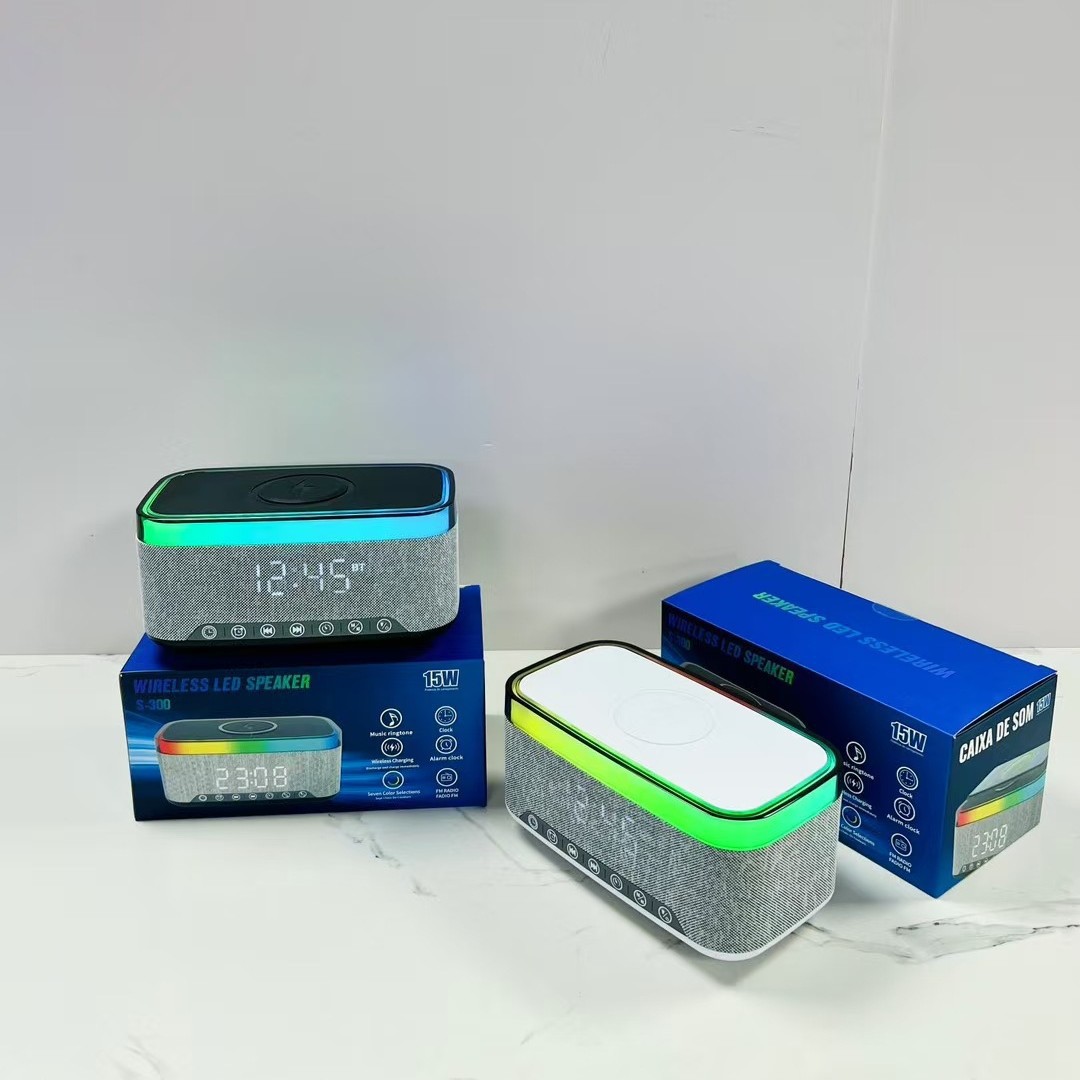 s300 white noise bluetooth speaker wireless charger electric digital clock alarm clock three-in-one wireless charger ambience light audio 中文版