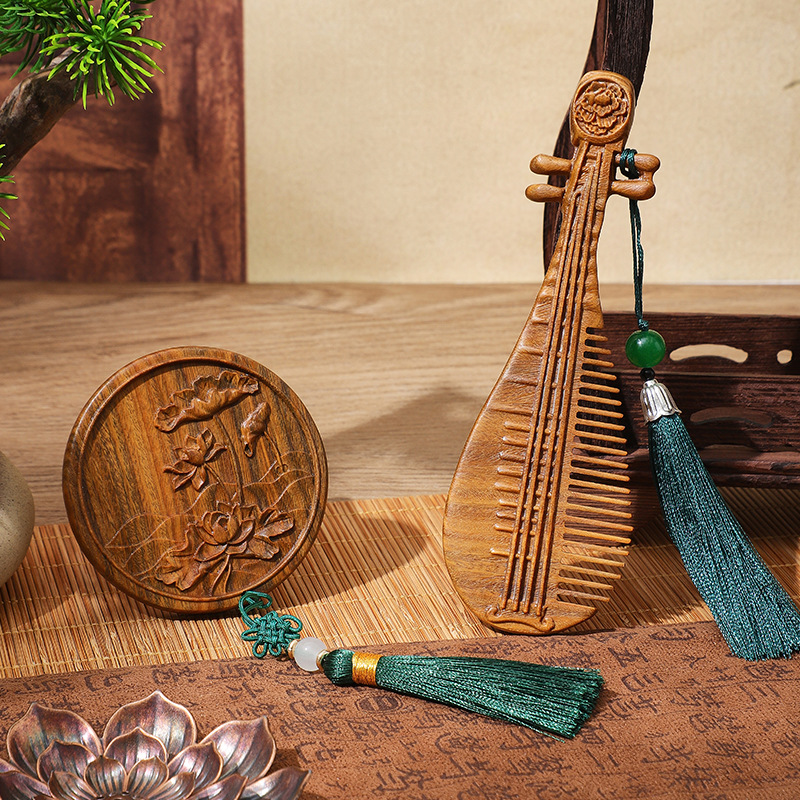 lotus leaves and flowers green sandalwood hair comb