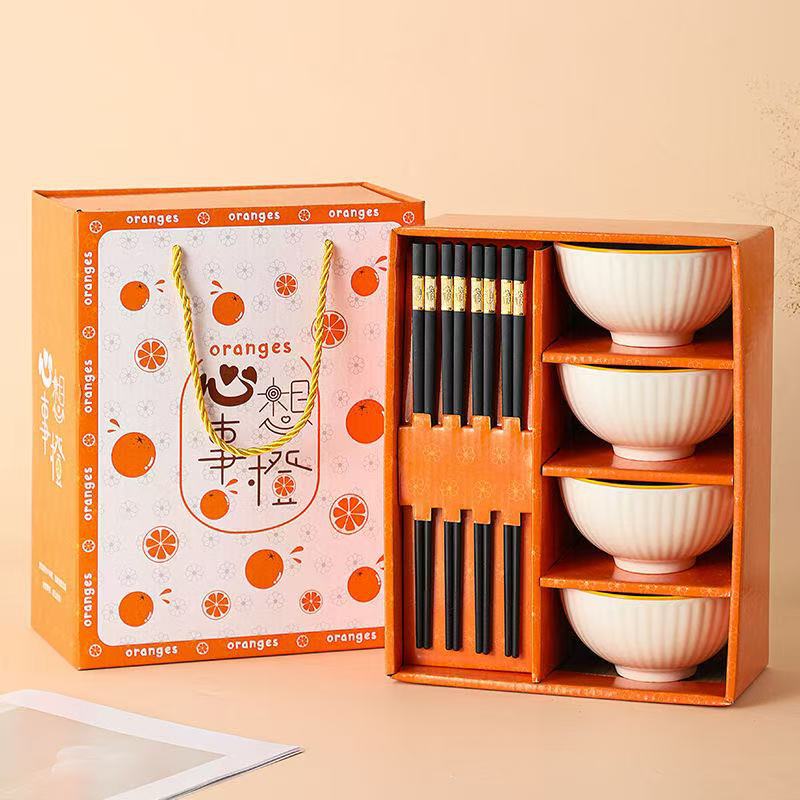 orange four bowls and chopsticks (20 sets/box)