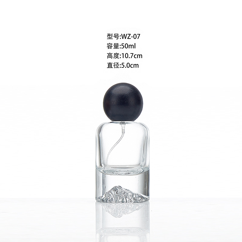 50ml; black wood ball cover + bottle + nozzle; glass