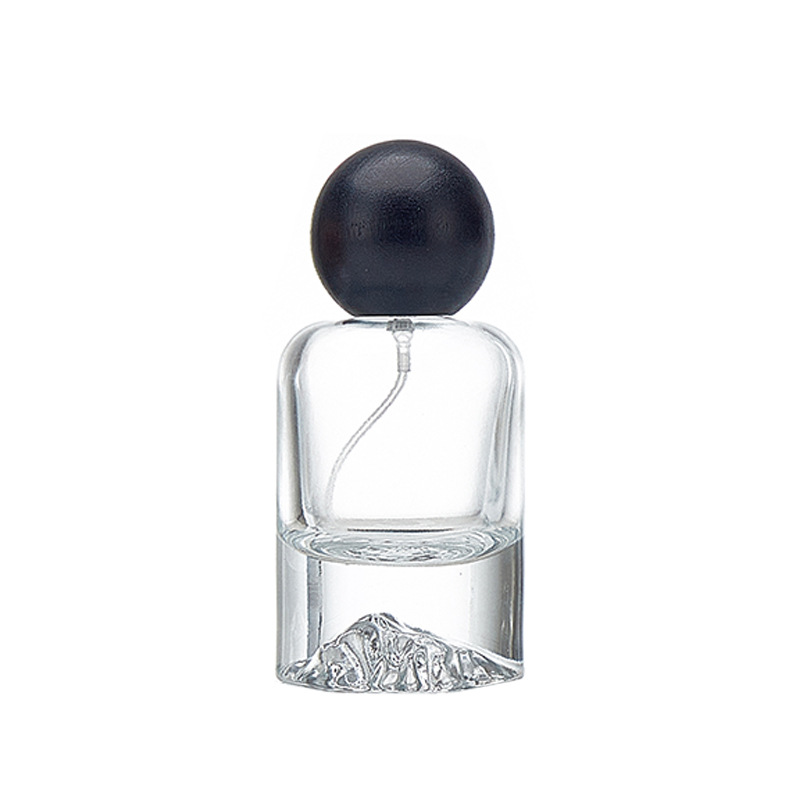30ml; brown wood ball cover + bottle + nozzle; glass