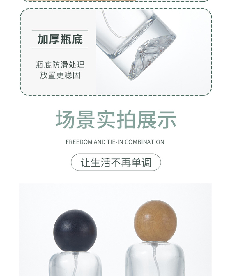 100ml; primary color wood ball cover + bottle + nozzle; glass