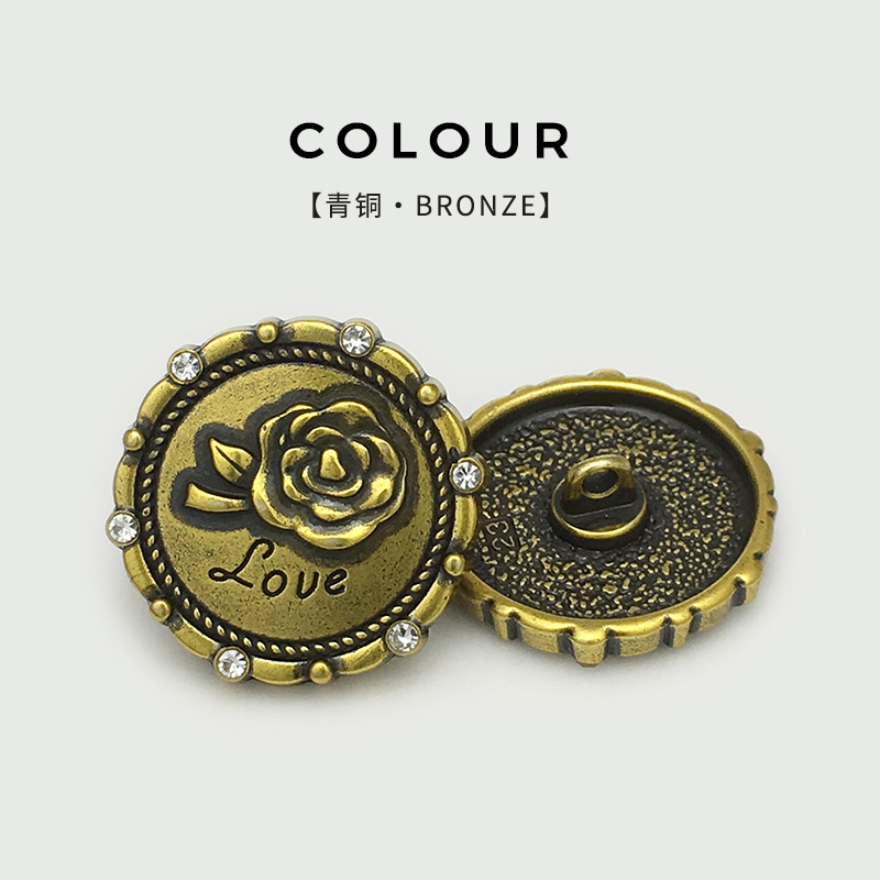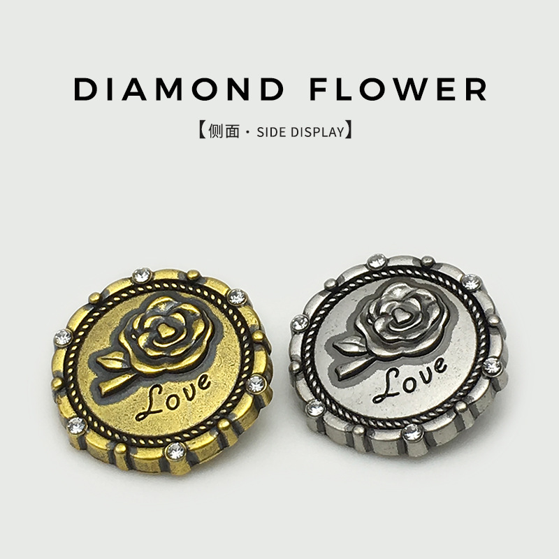 love diamond button women's suit coat decorative fur button high-end rose flower metal button 中文版