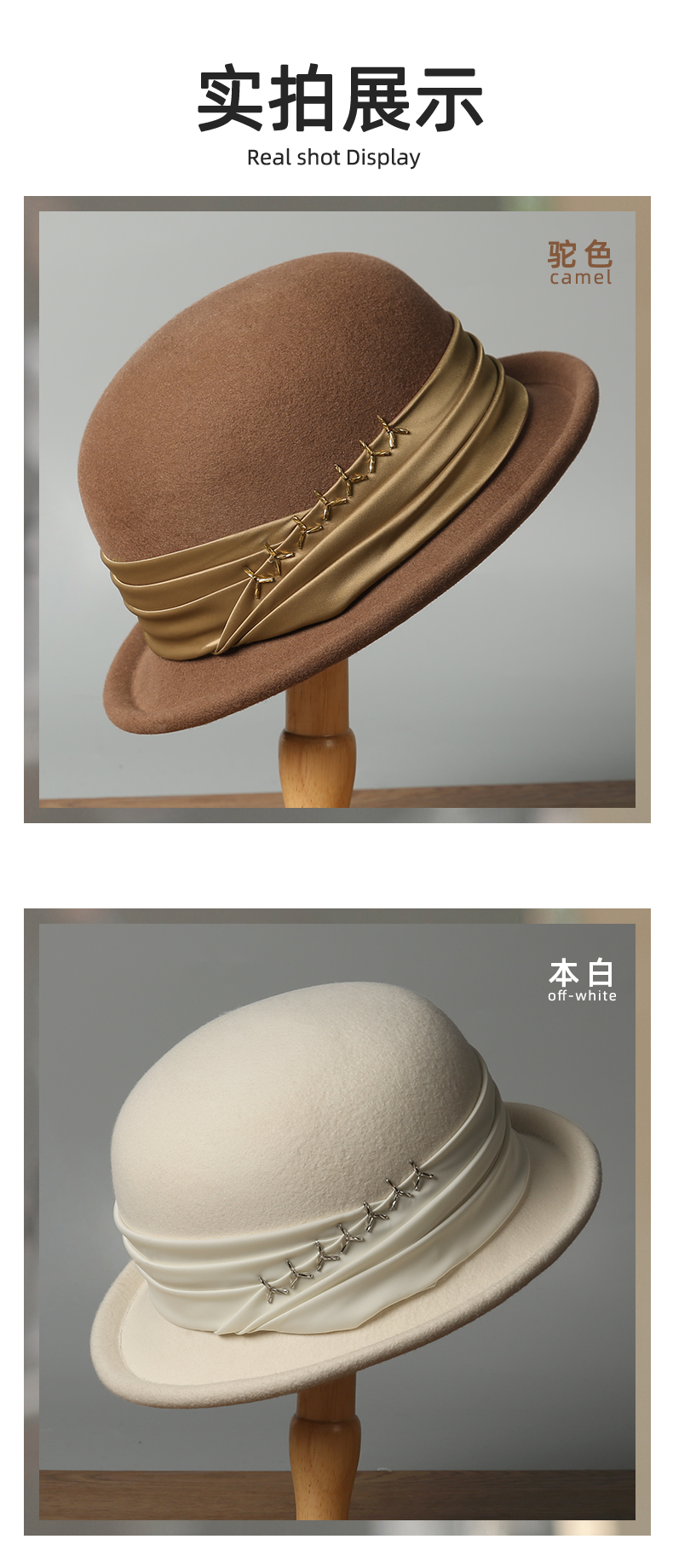 2025 autumn and winter new wool felt hats bucket hat women's french elegant all-match fashion commuter face-showing small hat 中文版