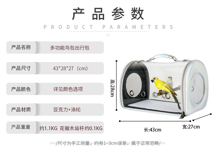 bird portable diaper bag tiger skin peony xuanfeng cage carrying transport parrot backpack bird cage portable crossbody bag 中文版