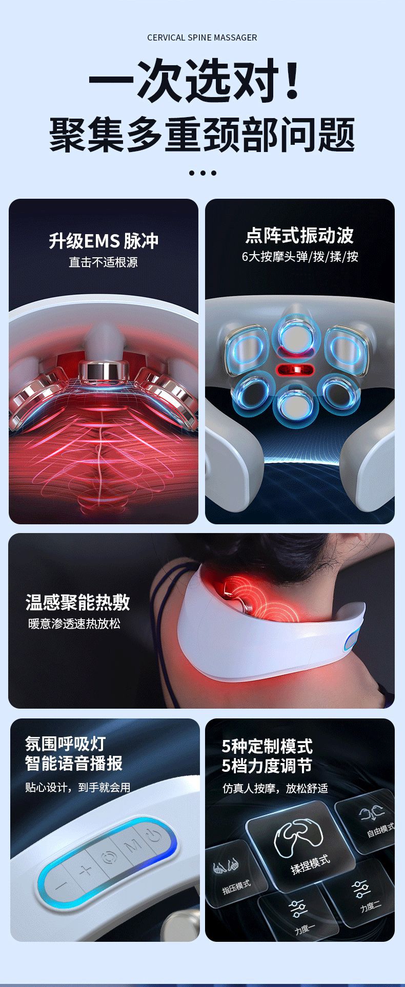 konka-white-rechargeable (5-speed 6-head + pulse + heating + vibration + voice broadcast)