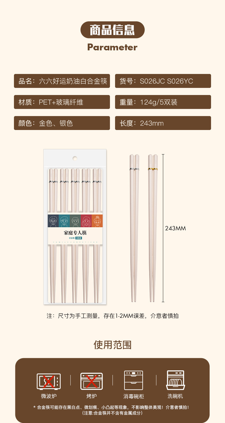 | s026jc six six good luck gold cream white alloy chopsticks | ¥0.0 | 9445 set available |