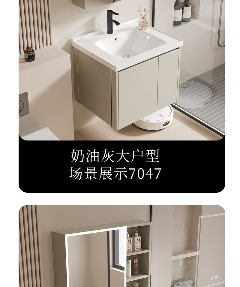 khaki light 7047 ceramic basin cabinet + smart storage mirror cabinet