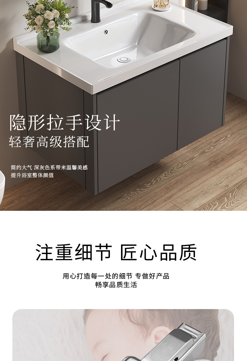 khaki light drawer 9047 ceramic basin cabinet + smart storage mirror cabinet