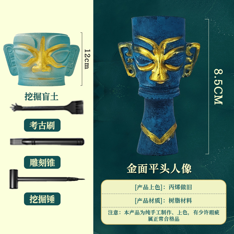 new sanxingdui archaeological excavation gold surface flat head statue [on-site version]]