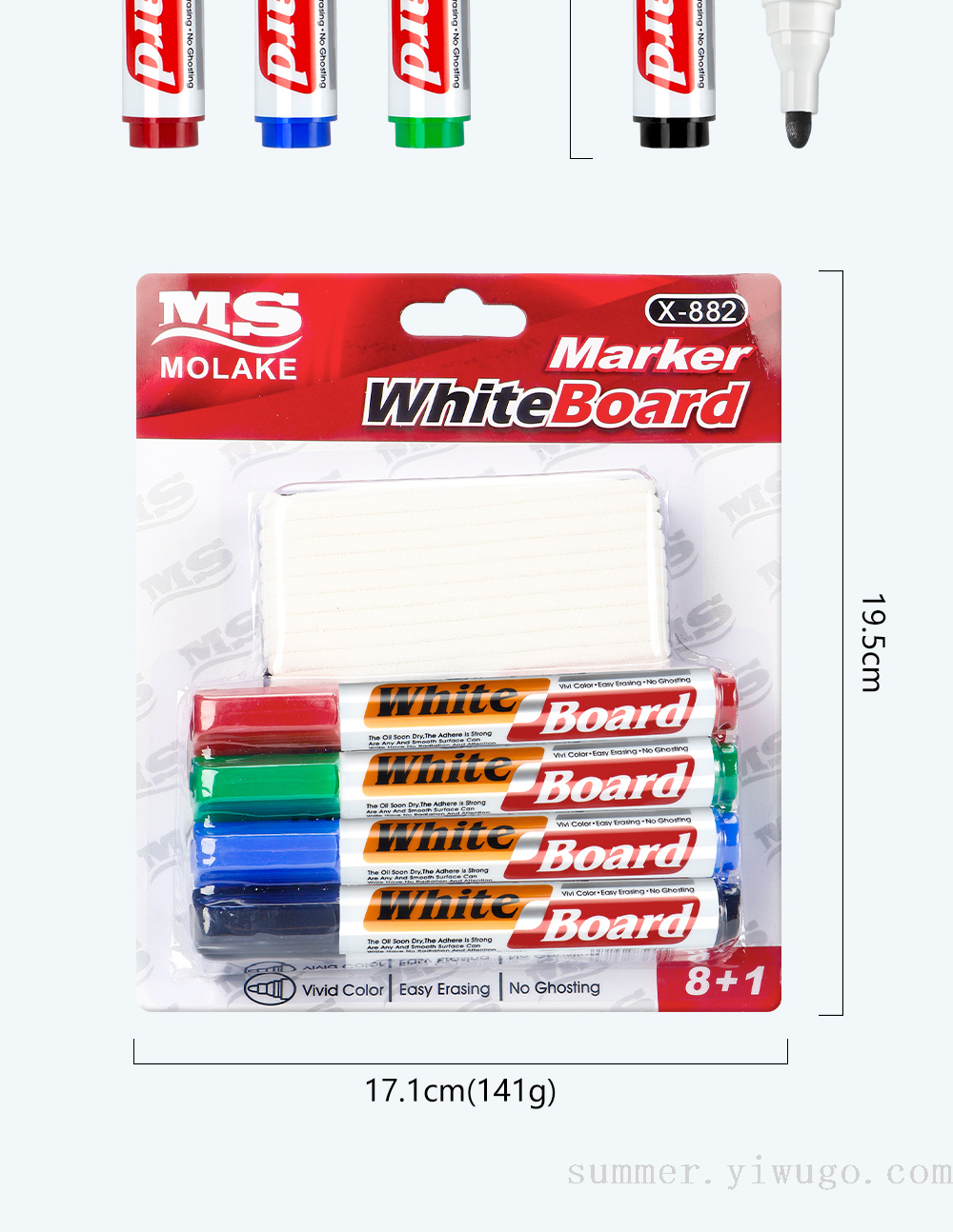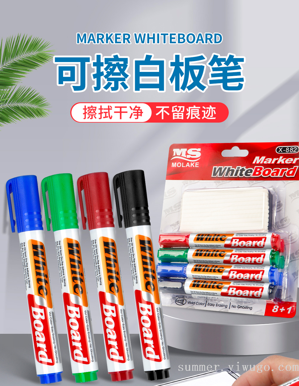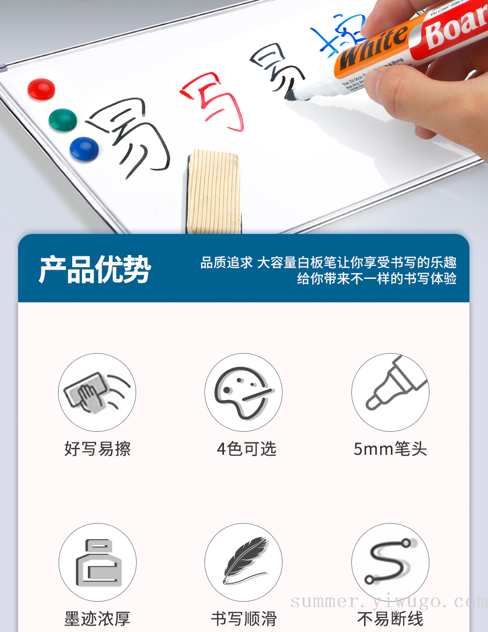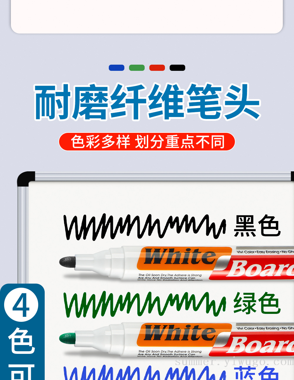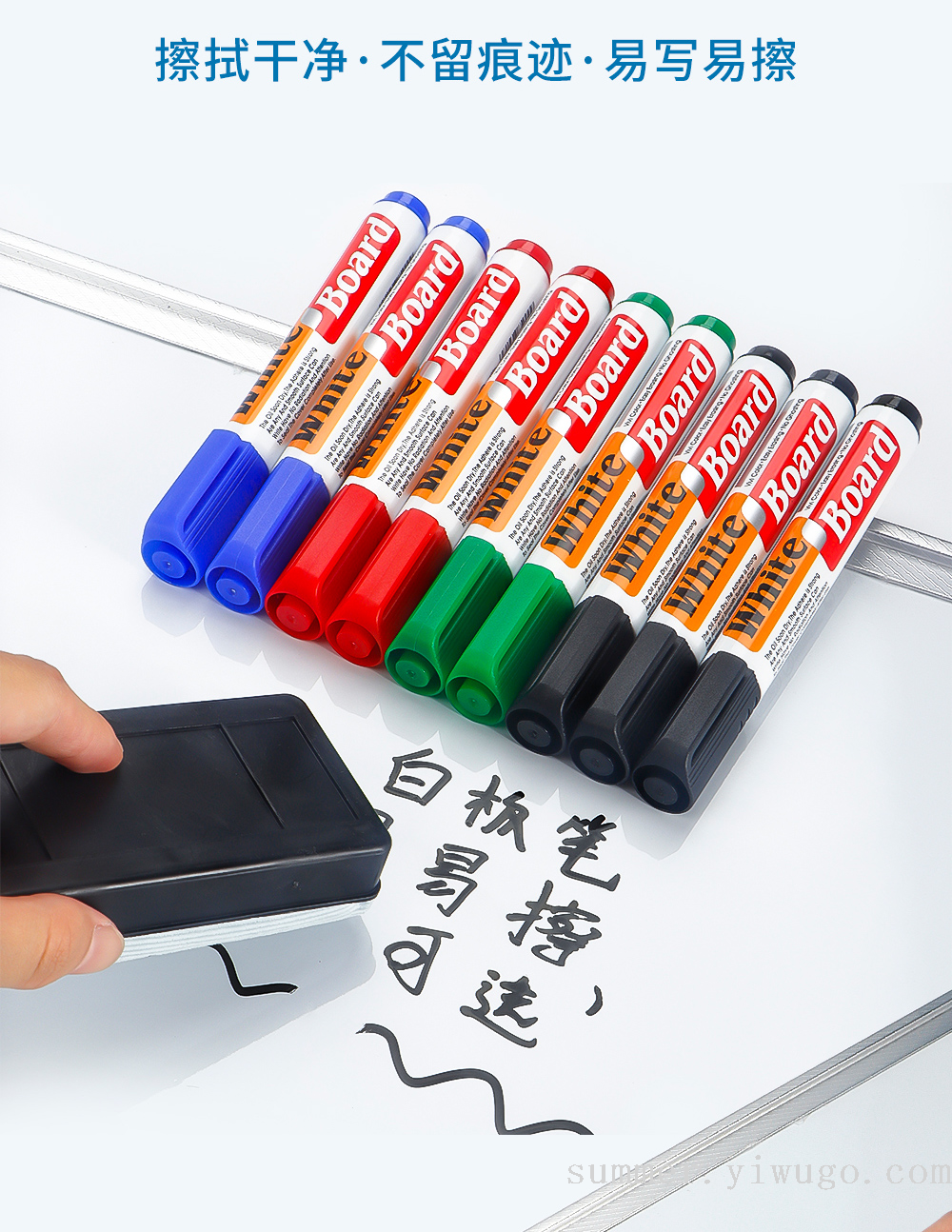 cross-border four-color card pack whiteboard pen set comes with eraser erasable stationery conference room teaching special blackboard pen 中文版