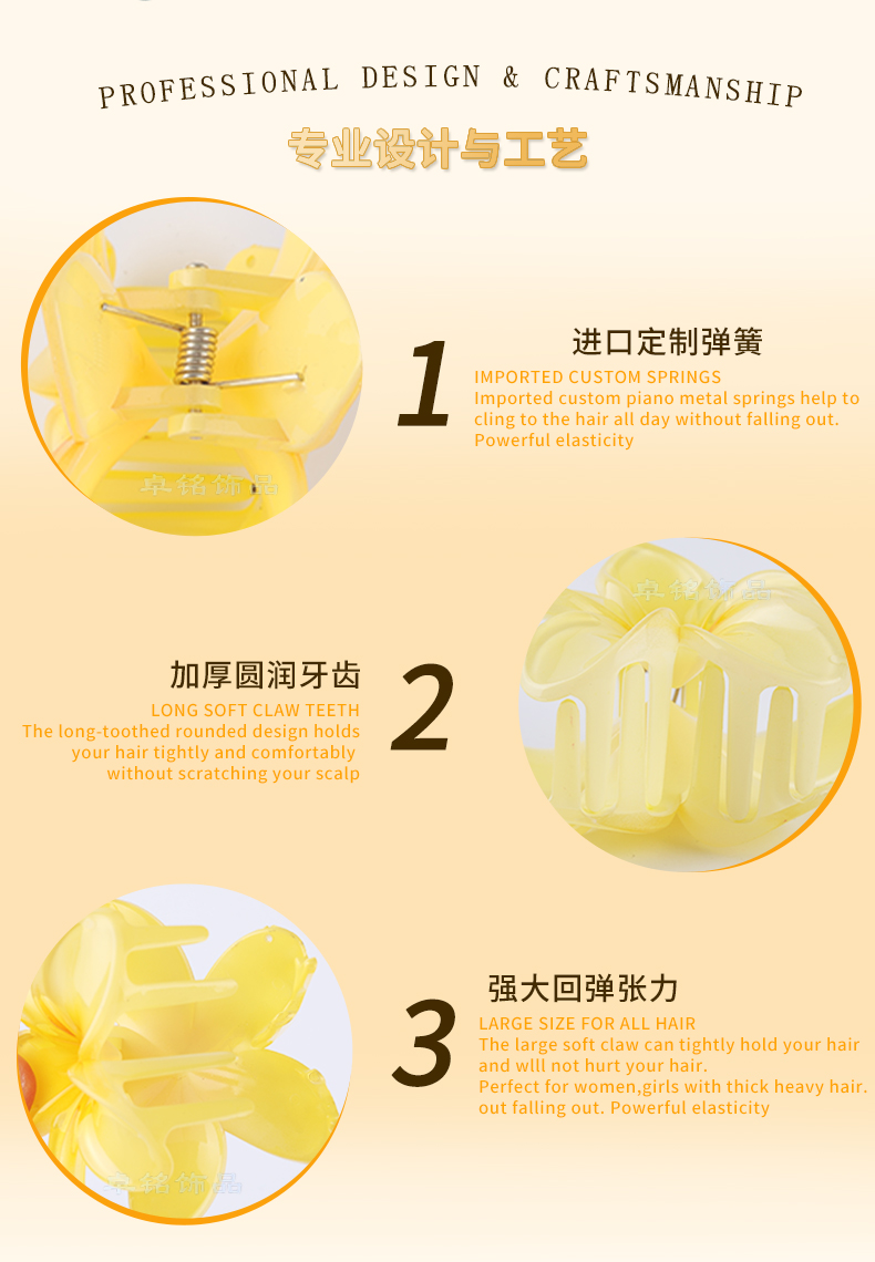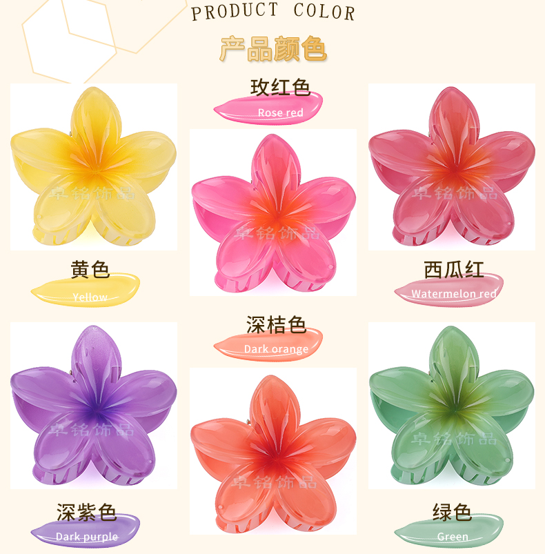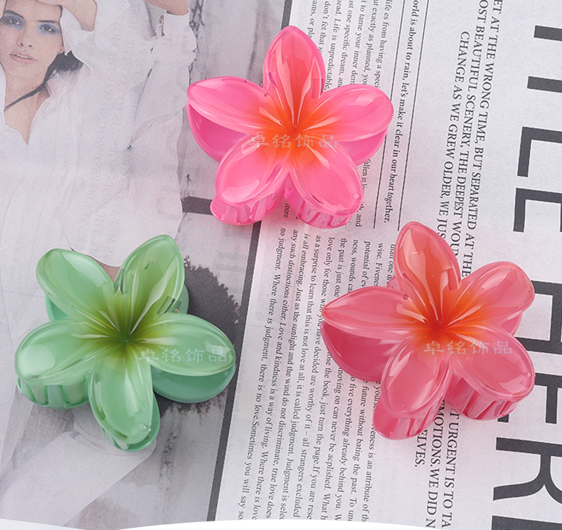 hot selling amazon cross-border 8cm dopamine plumeria rubra barrettes updo hair claw high sense female shark clip wholesale 中文版