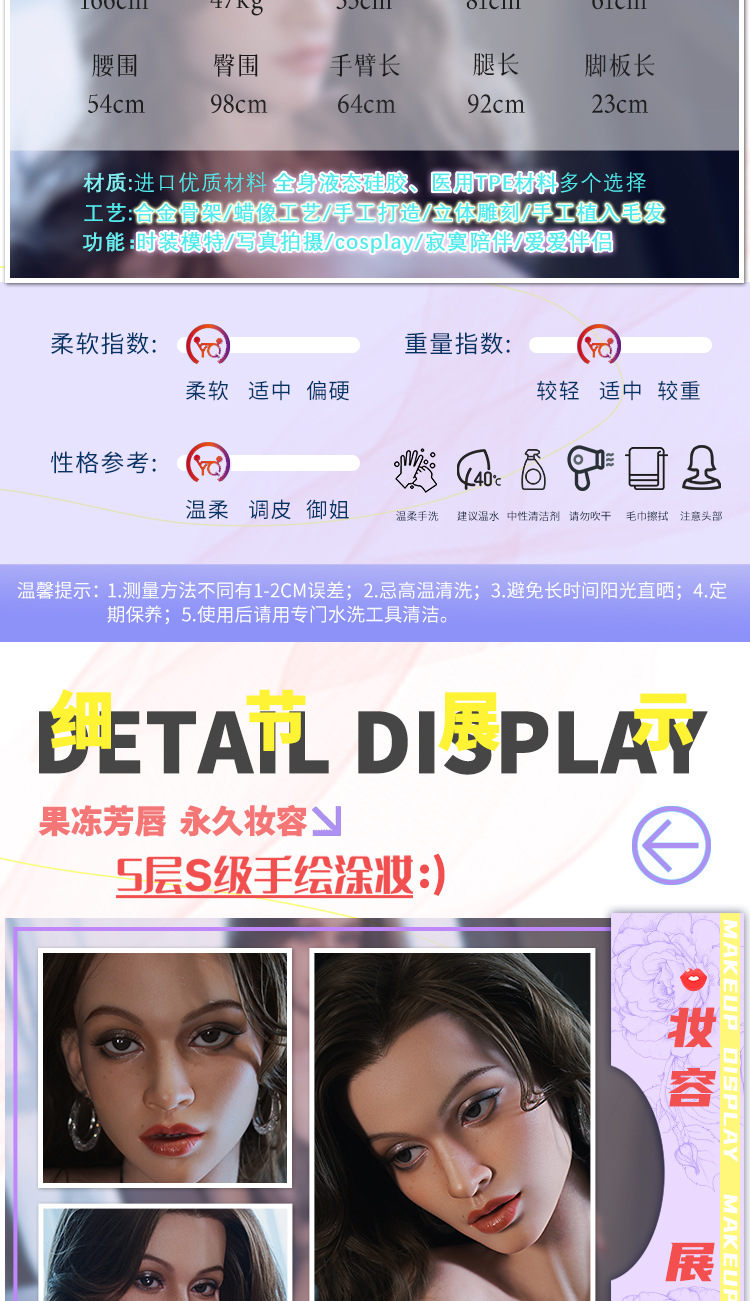 | 168cm silicone body + silicone end hair transplant + six functions | ¥6630.0 | 1000 piece available |